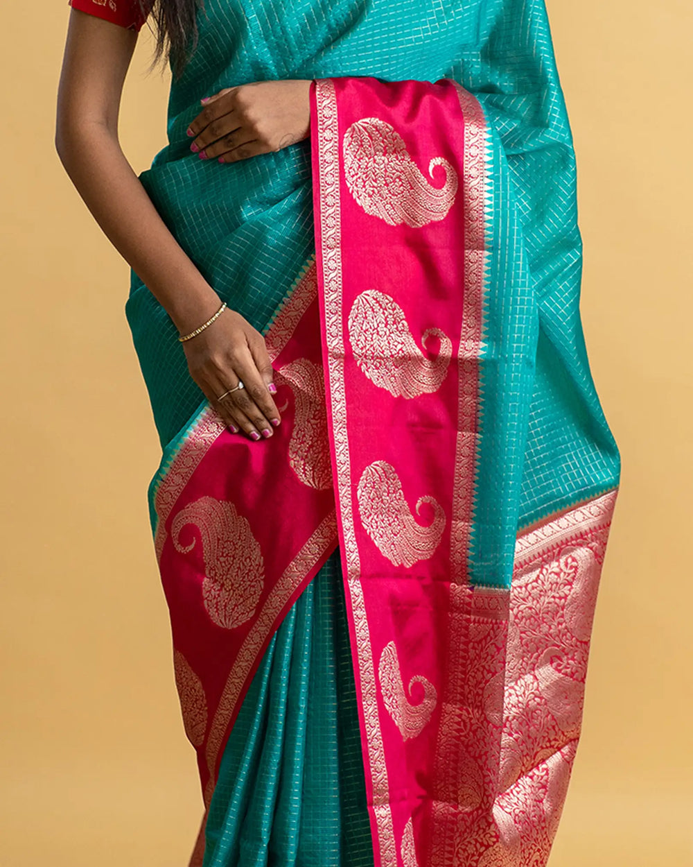 | Description | The Checked Georgette Saree offers a timeless classic look with its elegant checked pattern on soft, flowing georgette fabric. Lightweight and breathable, it is perfect for both casual gatherings and festive occasions. |