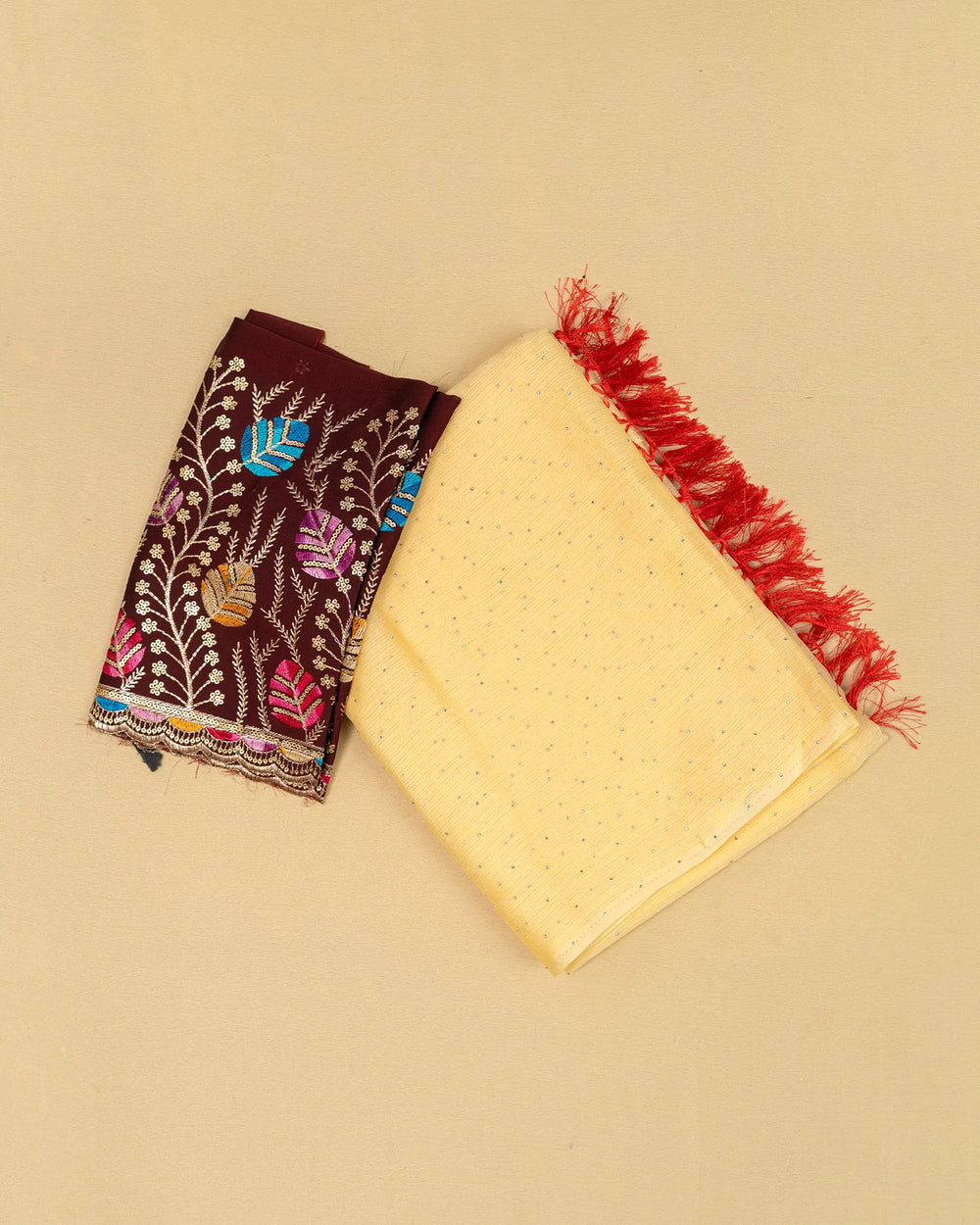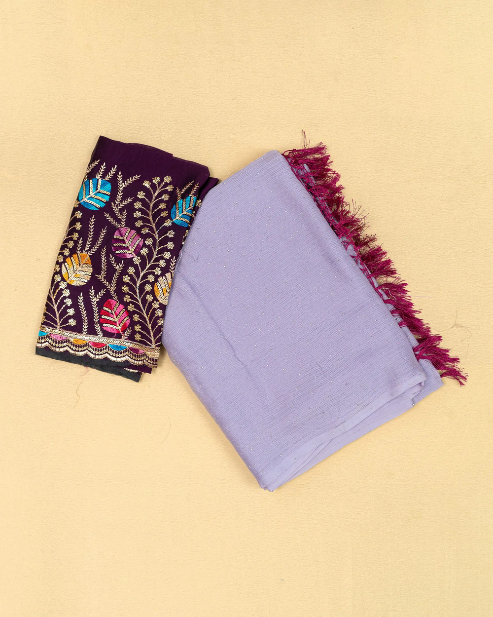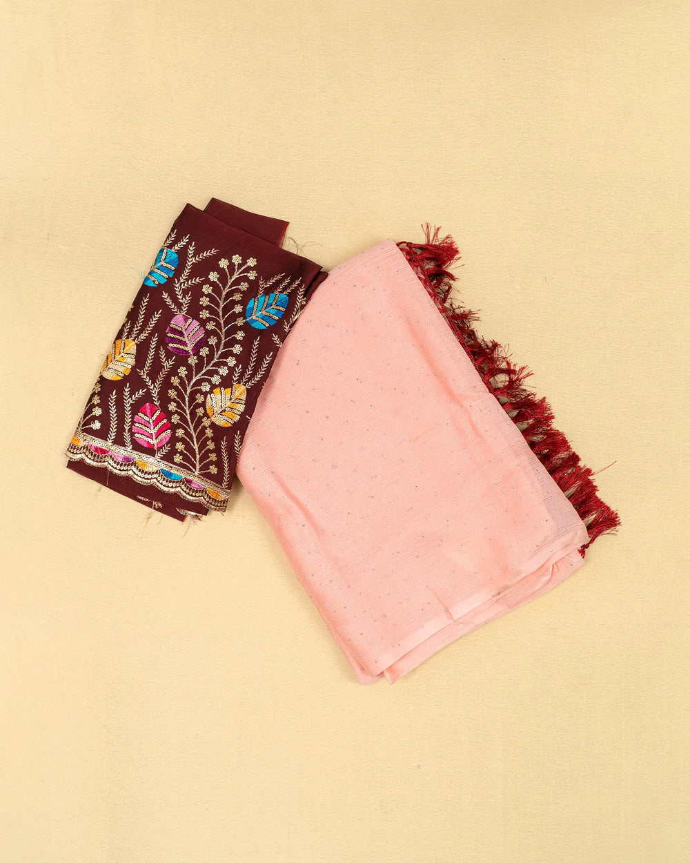 | Blouse | Separate blouse with exquisite work, designed to complement the saree's stone detailing and adding a refined, elegant touch to the overall ensemble. |