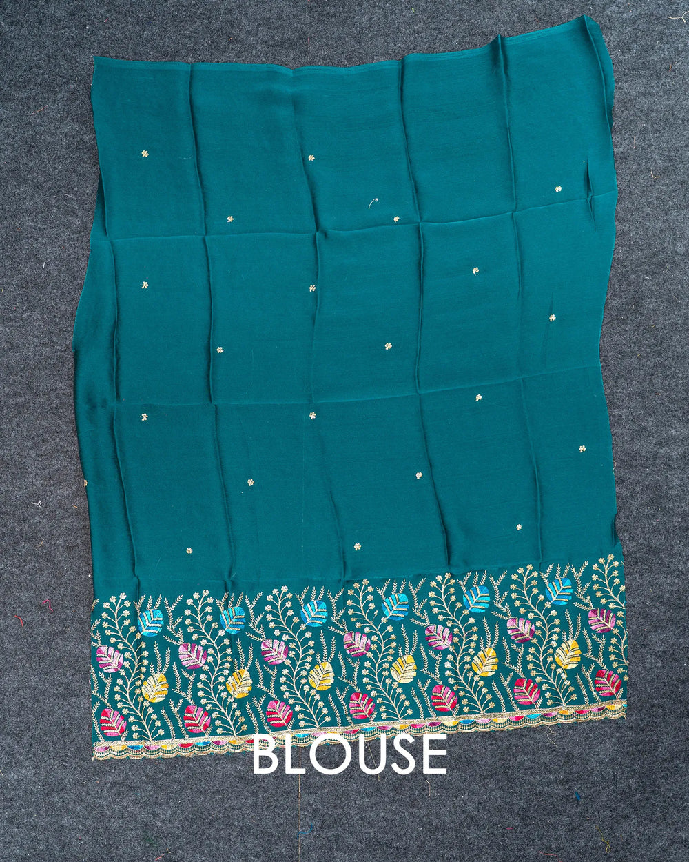 | Description | Elegant chiffon georgette saree featuring beautiful stone detailing, paired with a separate blouse that enhances the overall glamorous and festive look, perfect for weddings, parties, and celebrations. |
