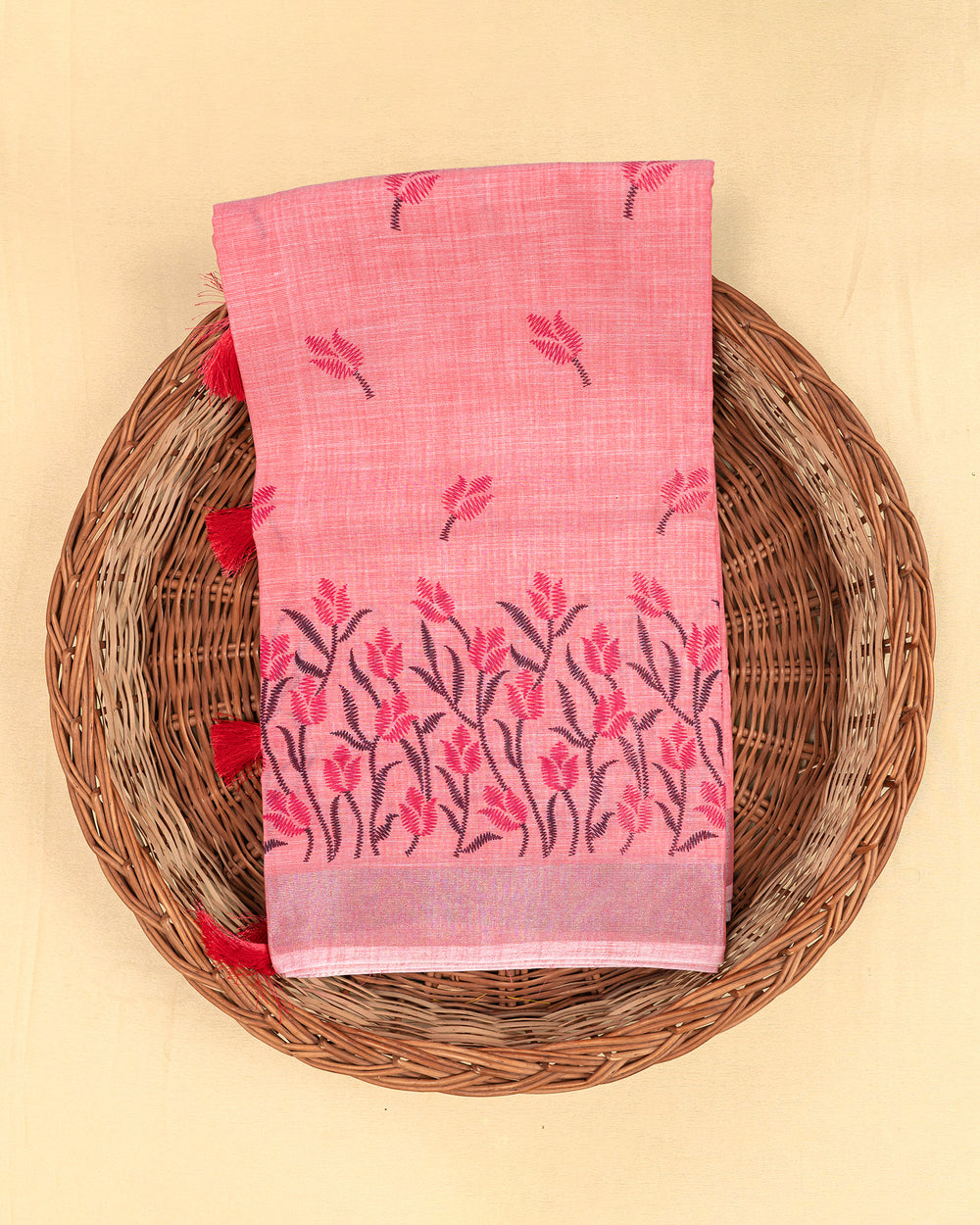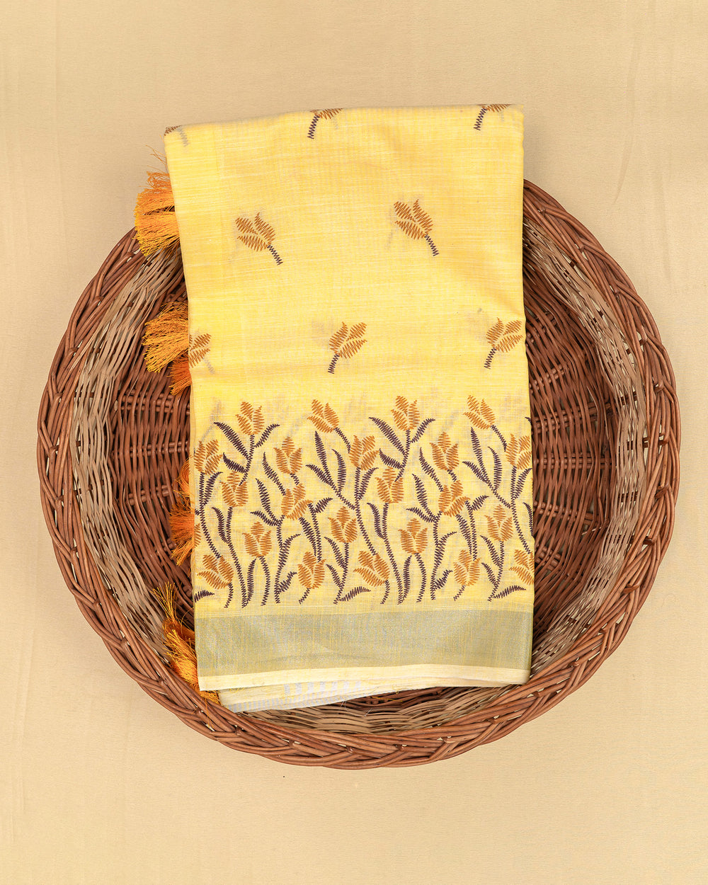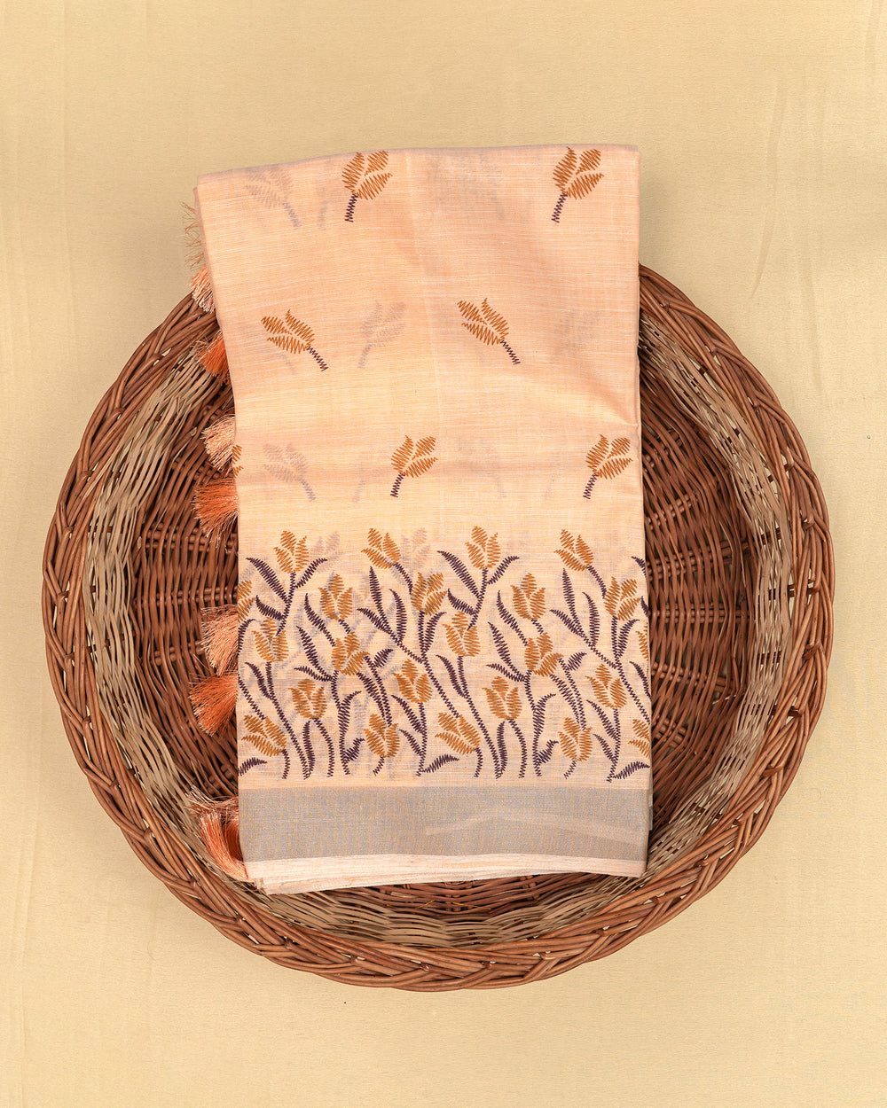 | Style | A classic cotton saree elevated with silver zari lines, offering subtle elegance and timeless appeal. |