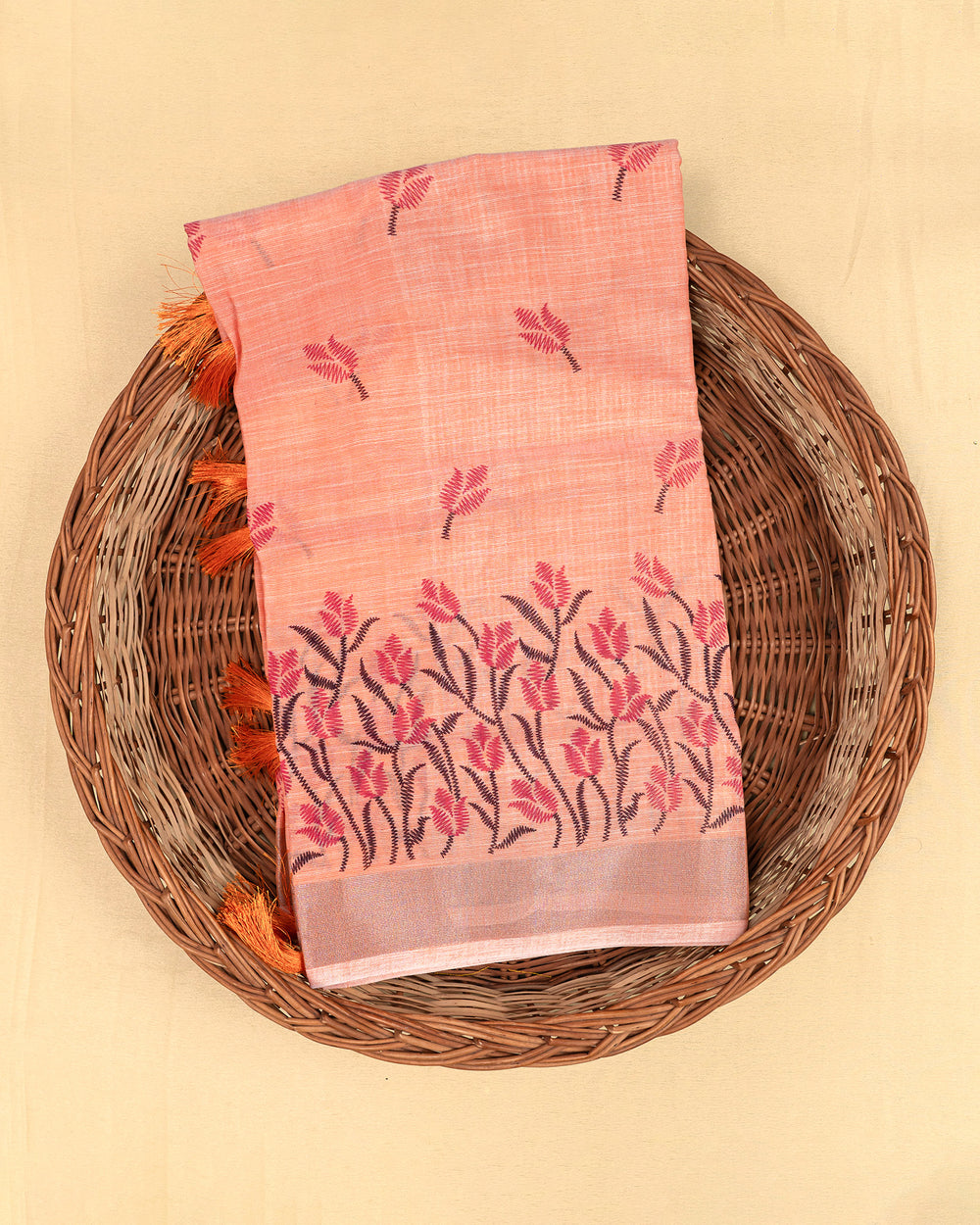 | Blouse | Running blouse featuring silver zari lines that beautifully complement the saree’s design and add a refined sparkle. |