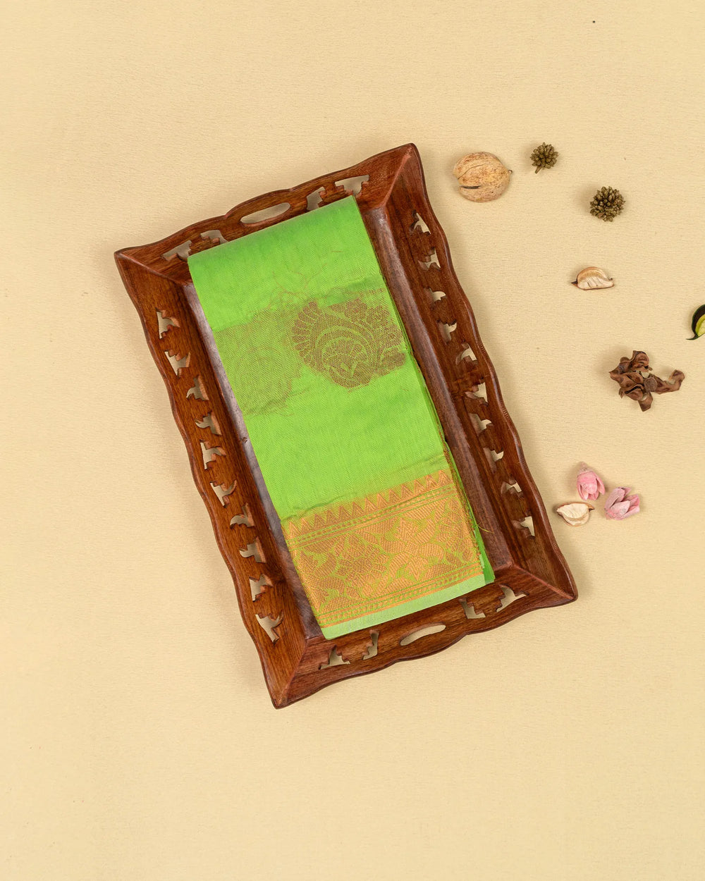 | Description | Classic cotton saree featuring intricate copper zari work, offering a refined and elegant look for everyday wear or special occasions. |
