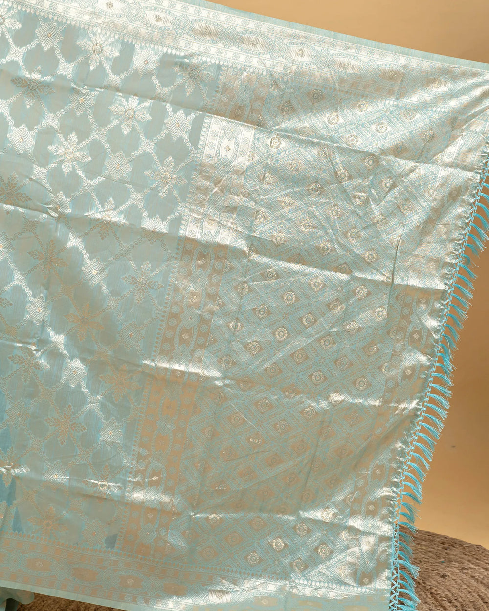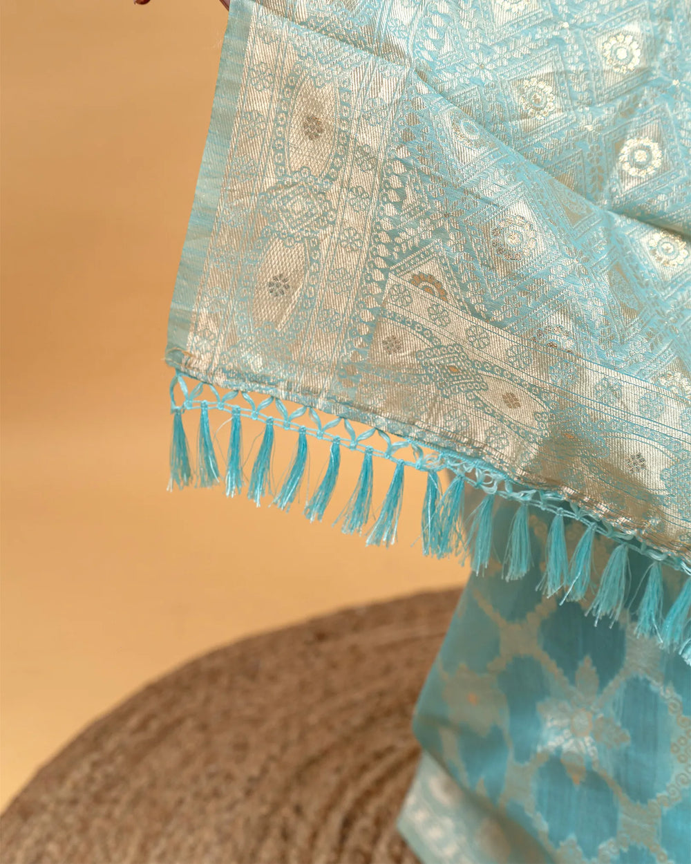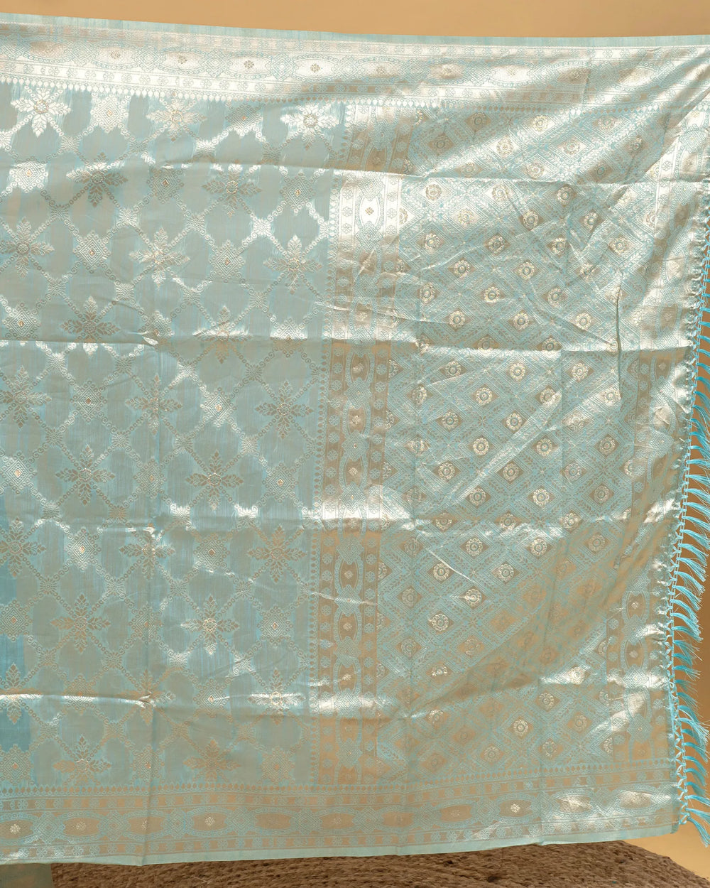 | Blouse | Running blouse with weaving butta, designed to harmonize beautifully with the saree’s woven patterns and zari finish. |