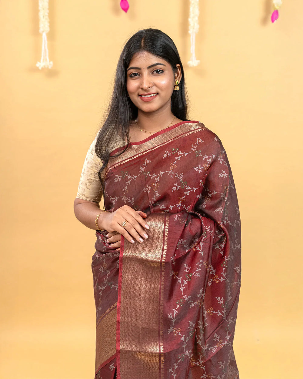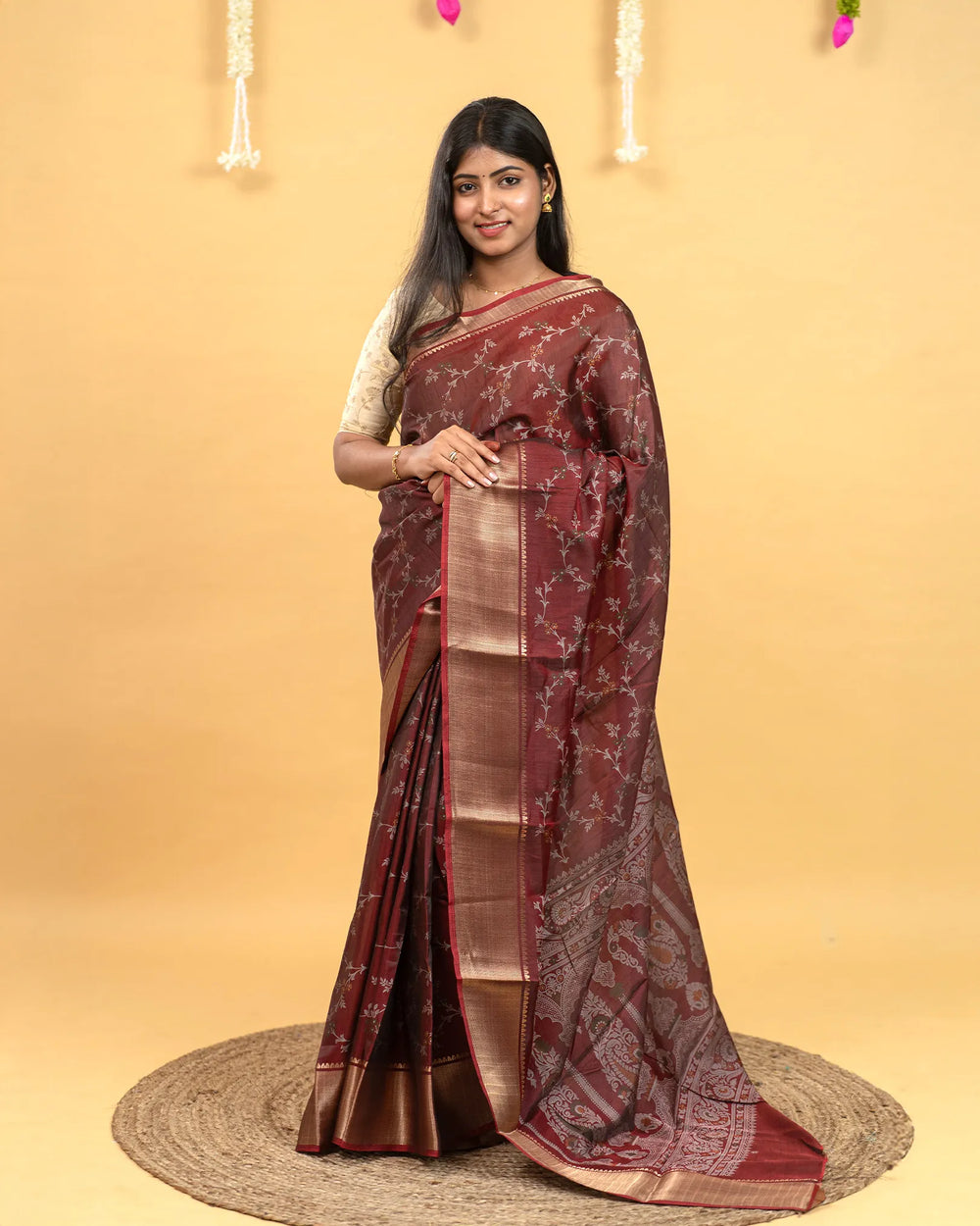 | Style | The bold black print enhances the elegance of Dola fabric, adding contemporary flair to a timeless saree |