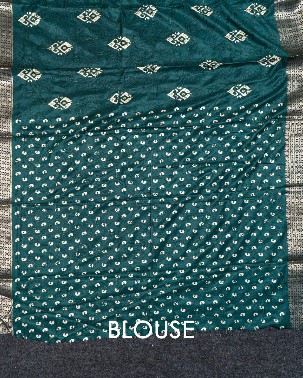 | Description | Exquisite Dola saree featuring intricate self-embroidery across the body combined with elegant Bandhini print motifs. The rich craftsmanship and vibrant detailing make it a perfect choice for weddings, festive occasions, and grand celebrations. |