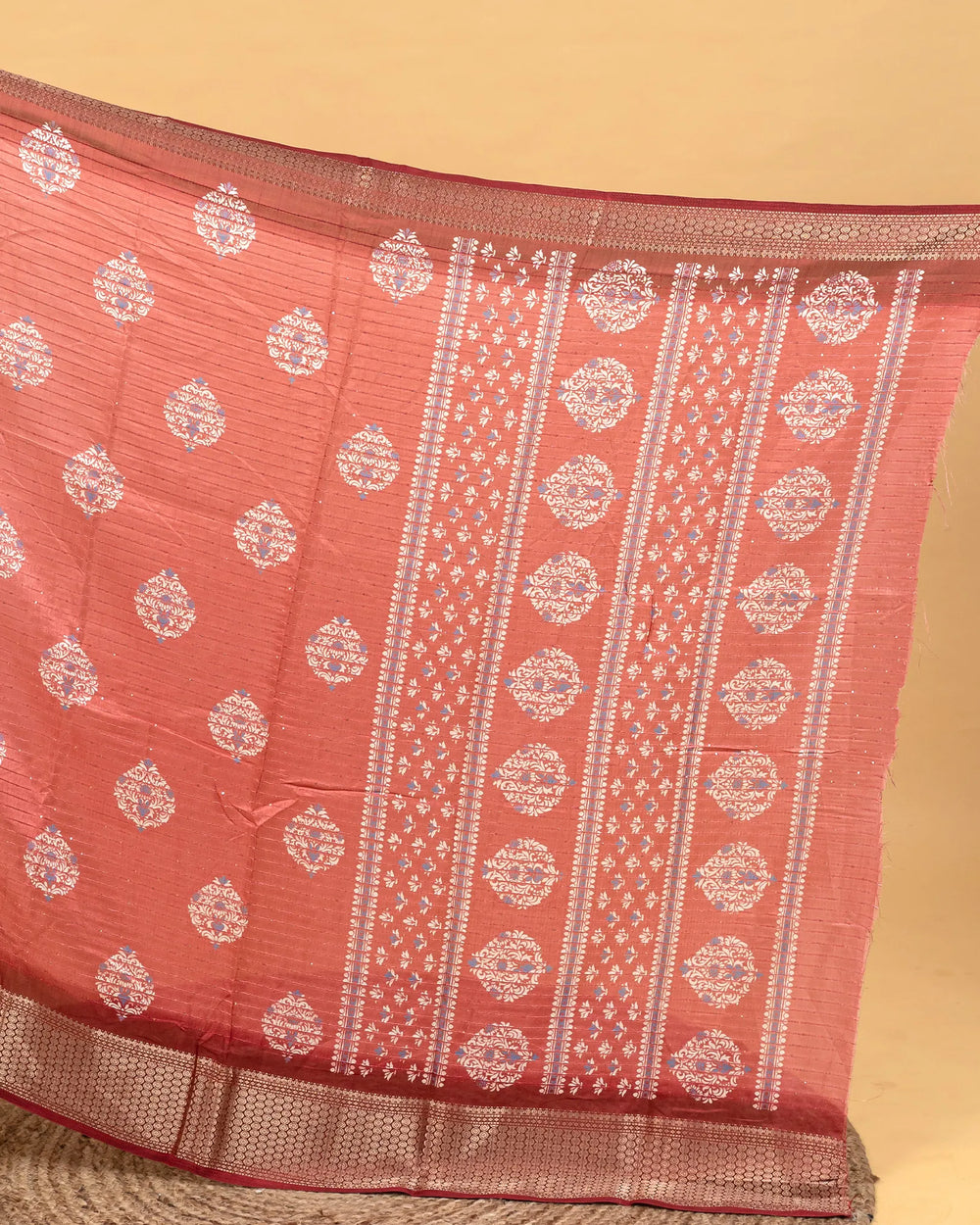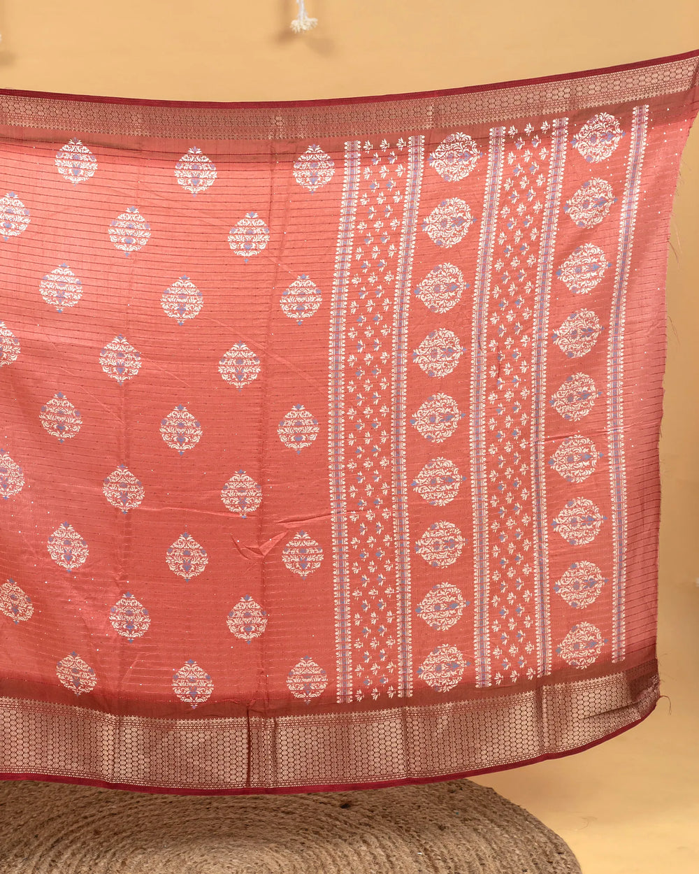 | Description | Gorgeous Dola saree embellished with sparkling sequence embroidery combined with elegant Bandhini print motifs. The harmonious mix of intricate detailing and festive shimmer makes it perfect for weddings, parties, and celebratory occasions. |
