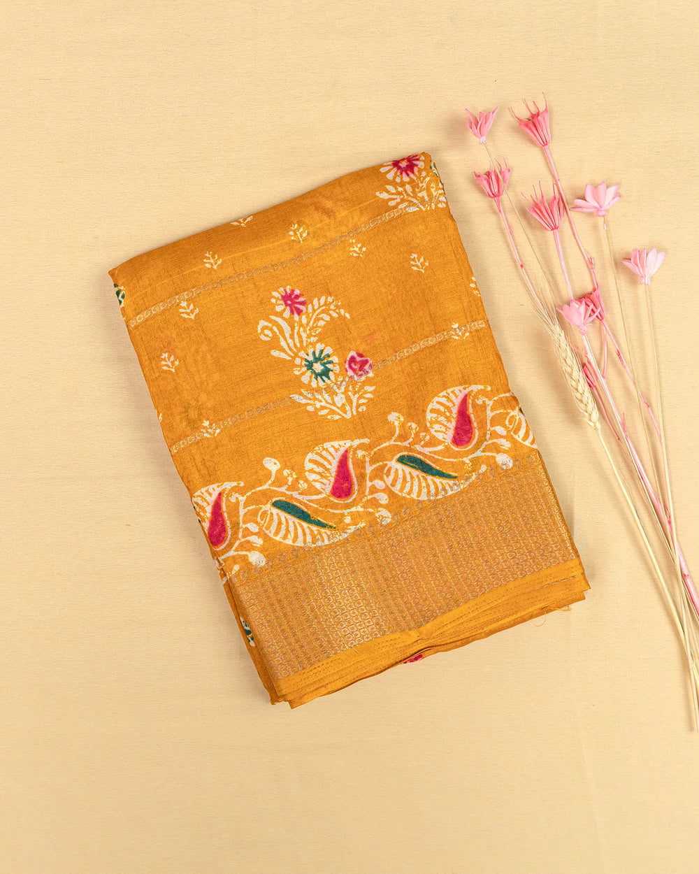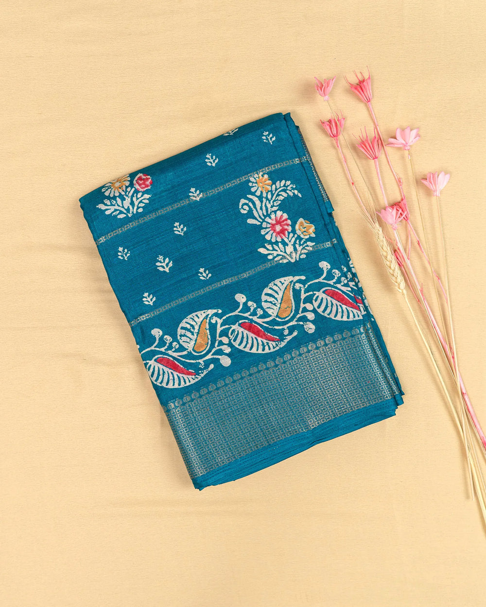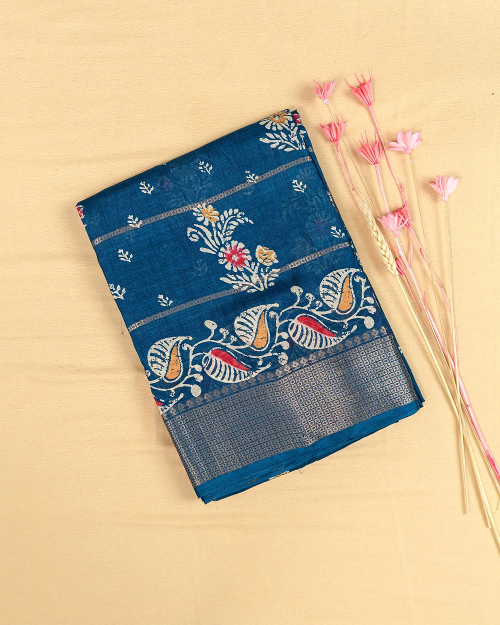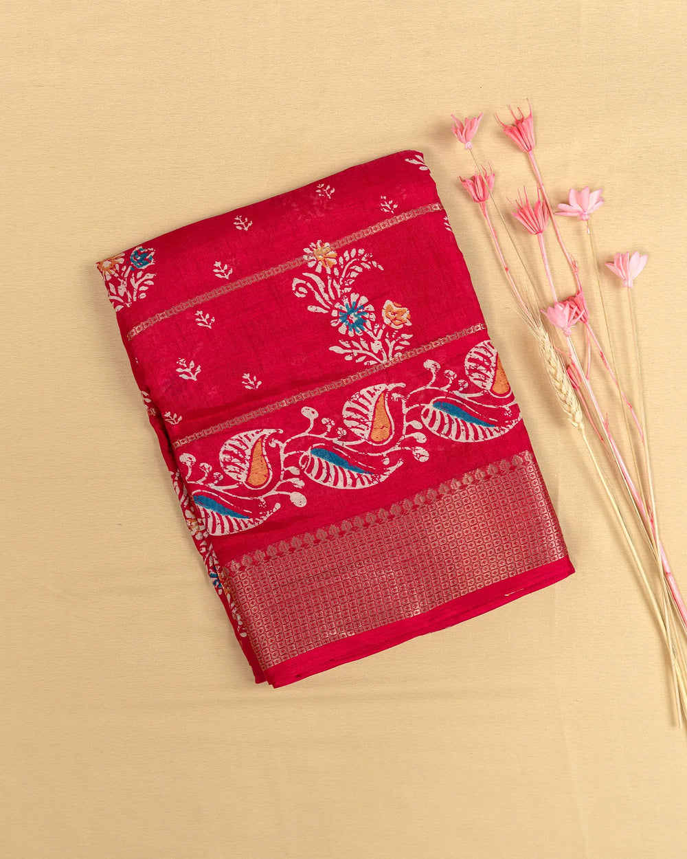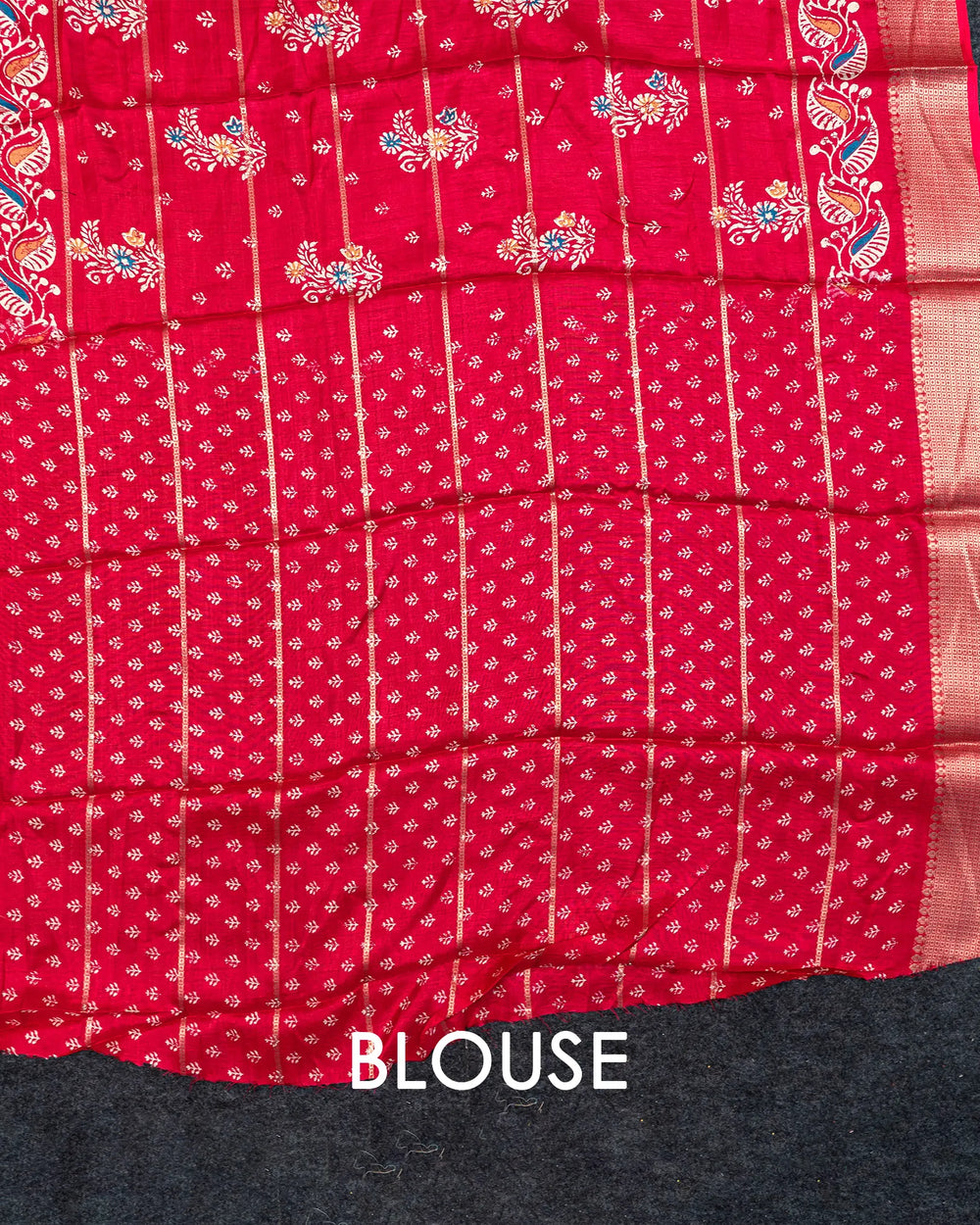 | Blouse | Digital print blouse with zari lines, designed to add a touch of contemporary charm while beautifully complementing the rich Dola fabric |