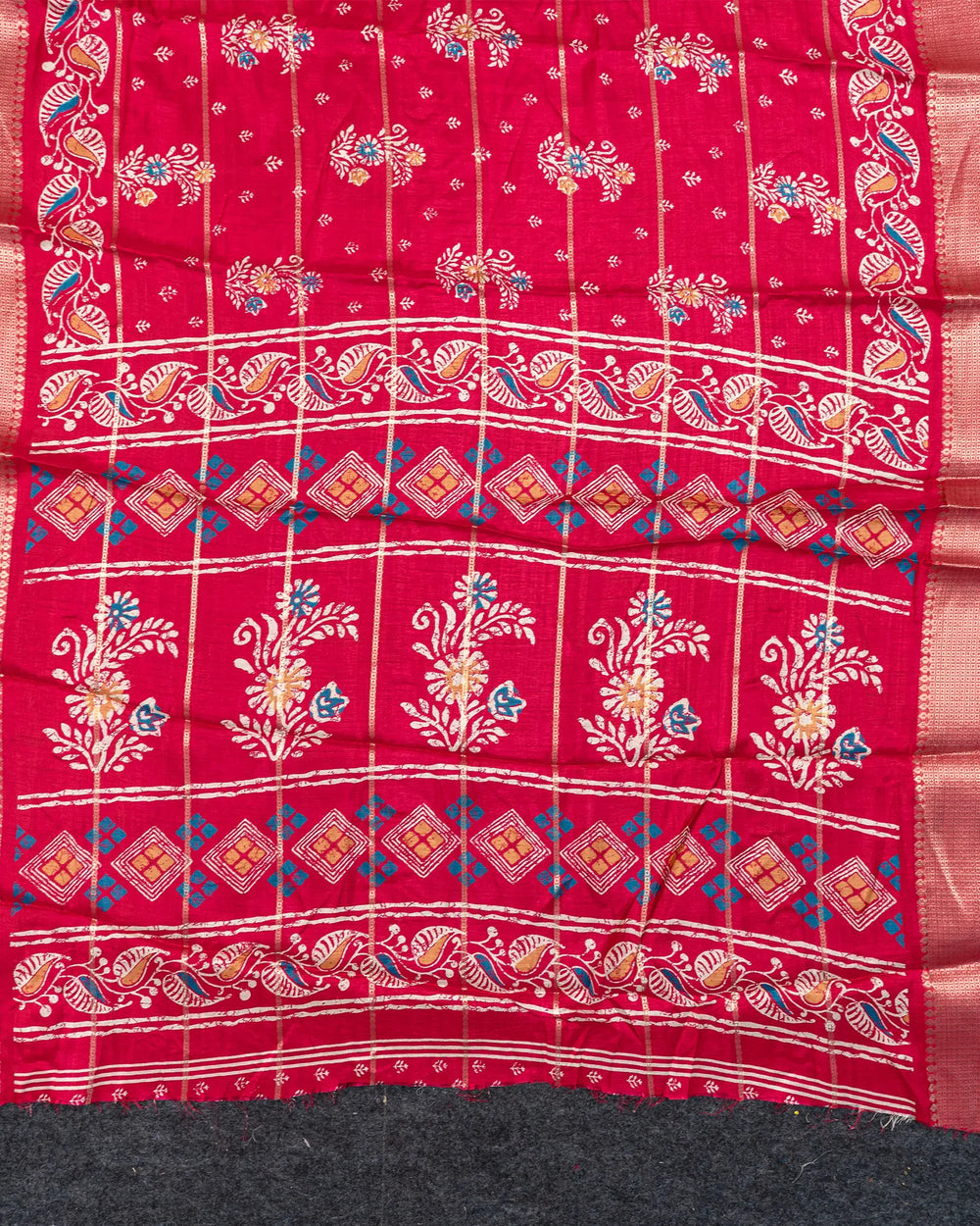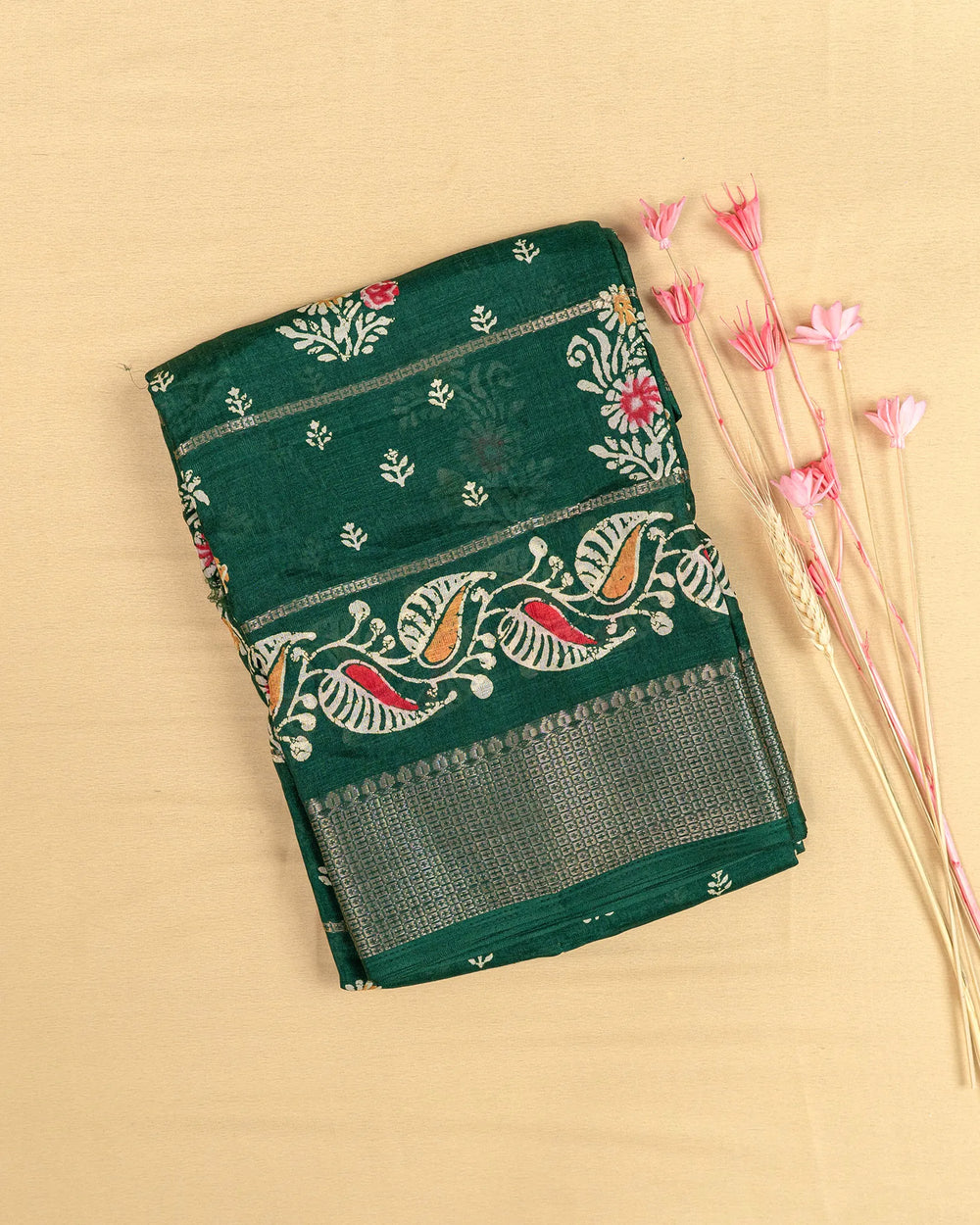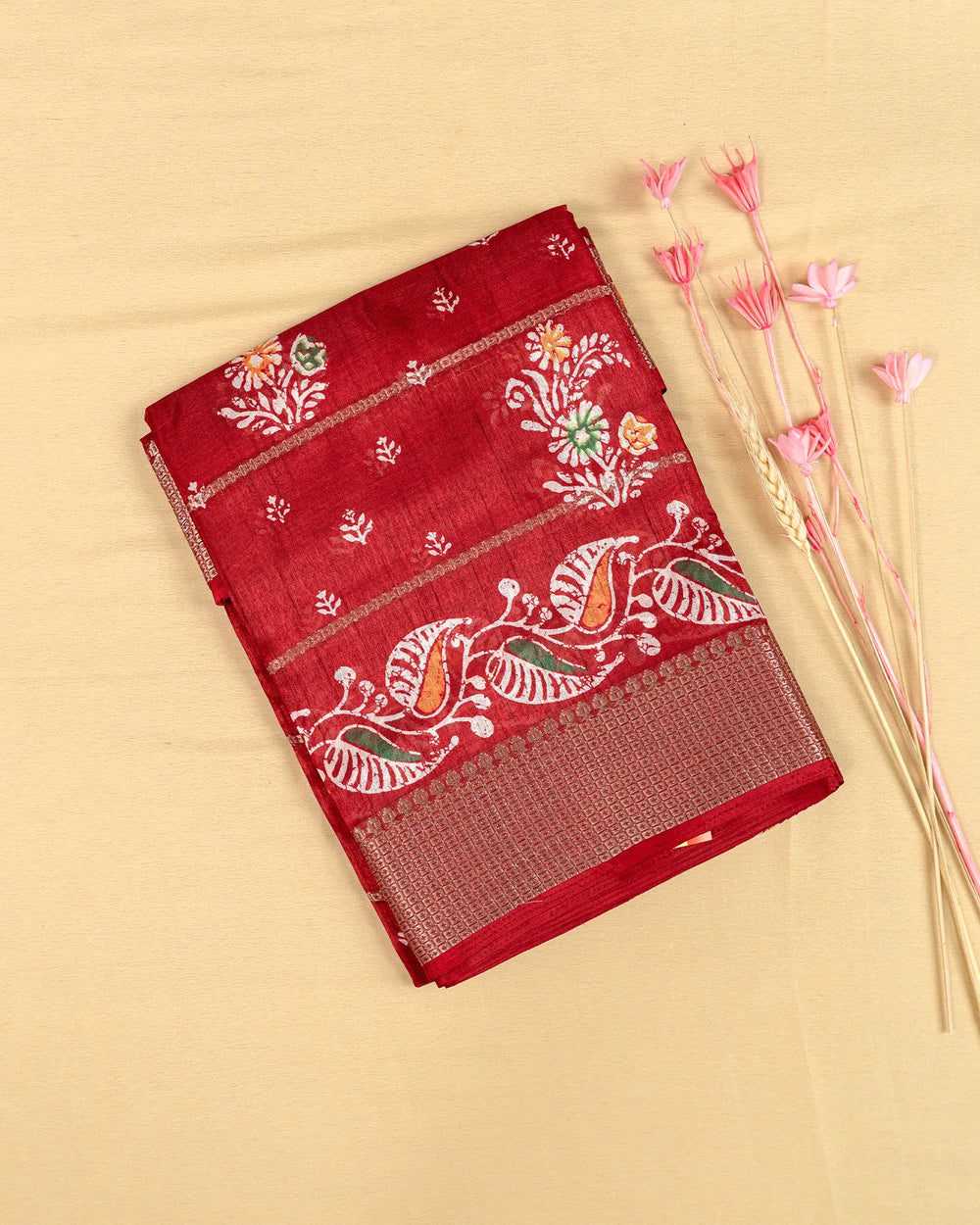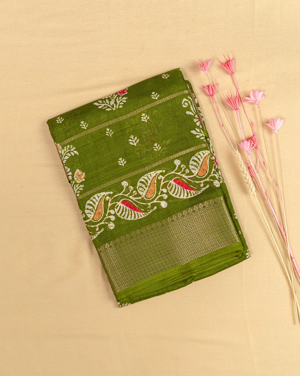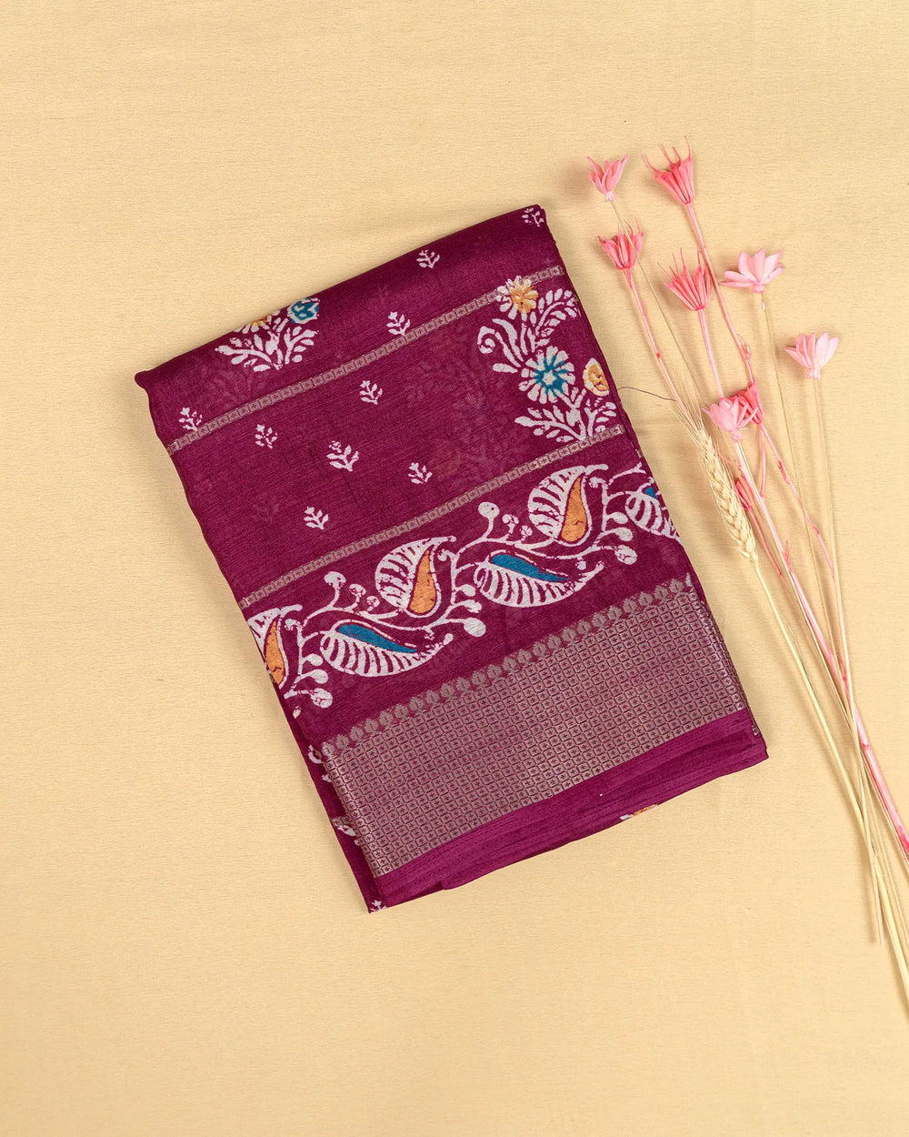 | Blouse | Digital print blouse with zari lines, designed to add a touch of contemporary charm while beautifully complementing the rich Dola fabric |