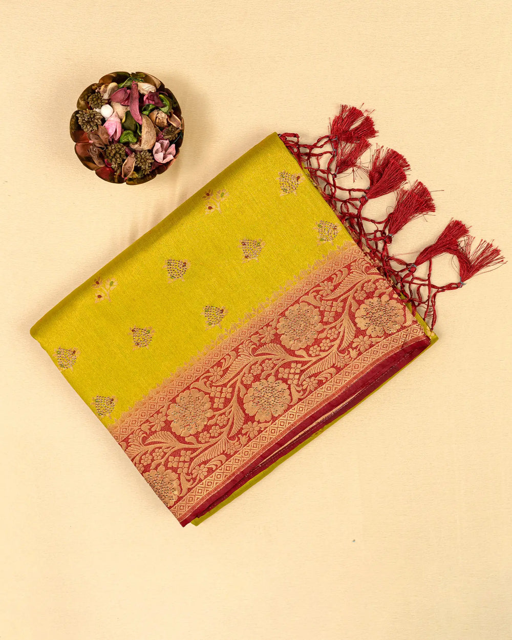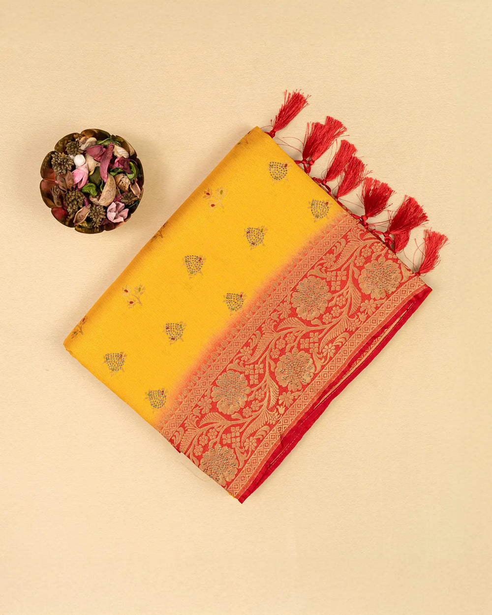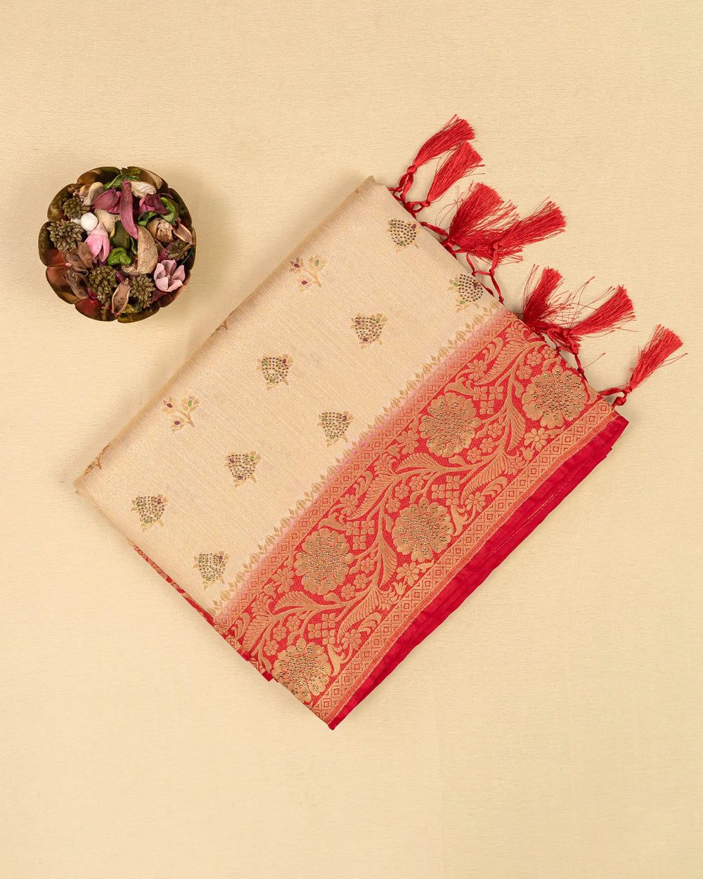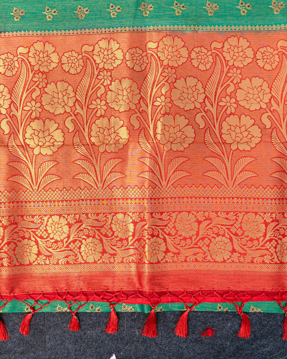 | Blouse | Running embossed blouse that complements the saree’s rich texture and adds an elegant finishing touch |
