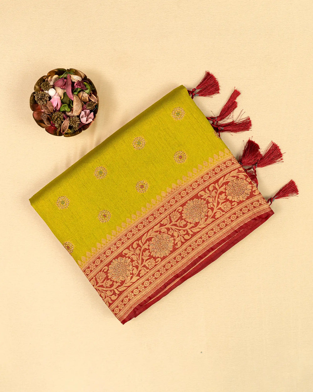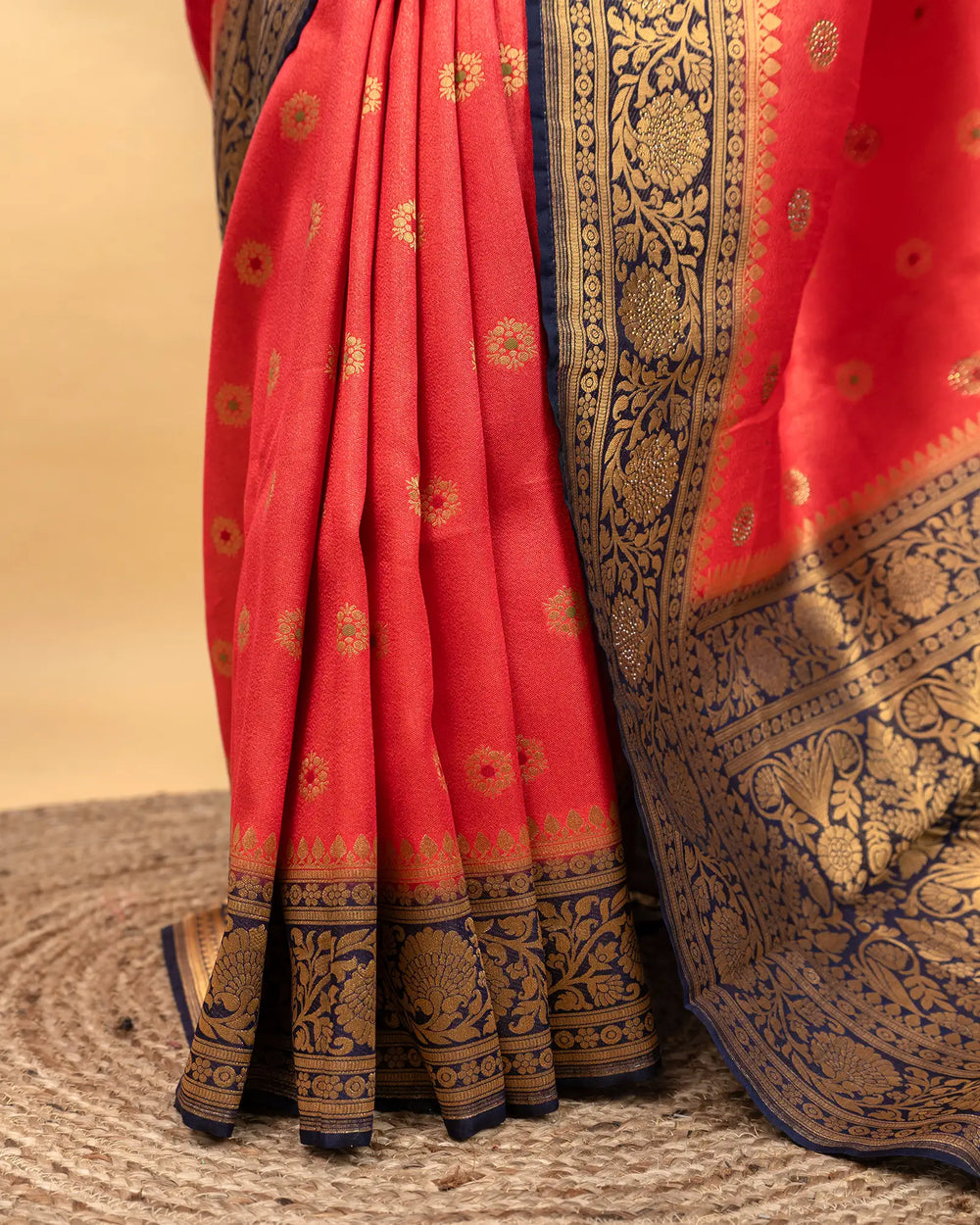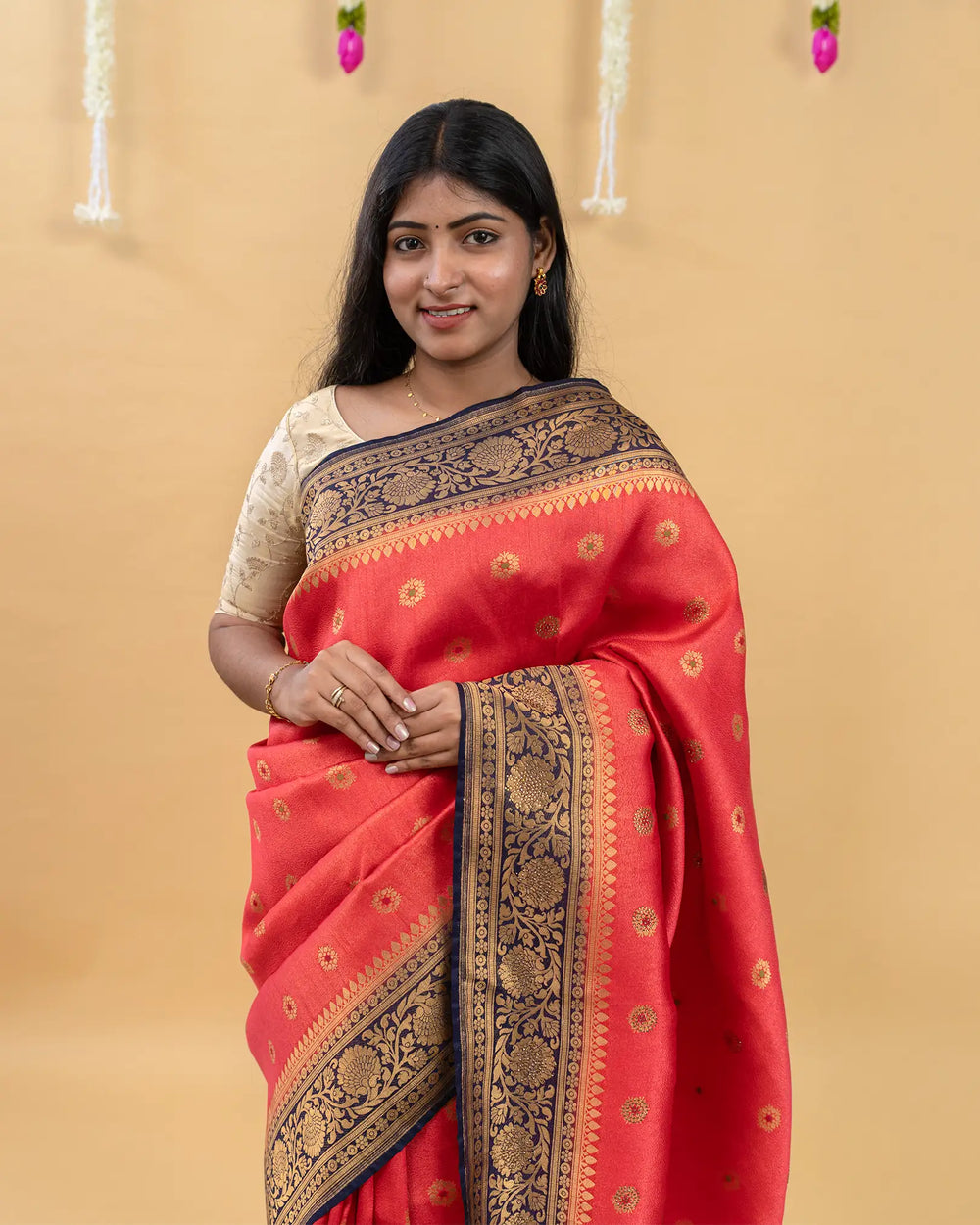 | Blouse | Running embossed blouse that complements the saree’s rich texture and adds an elegant finishing touch |