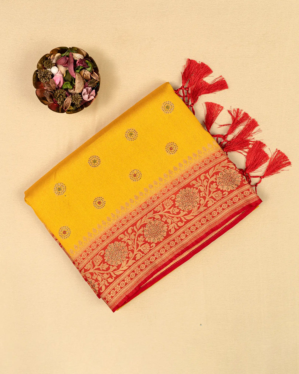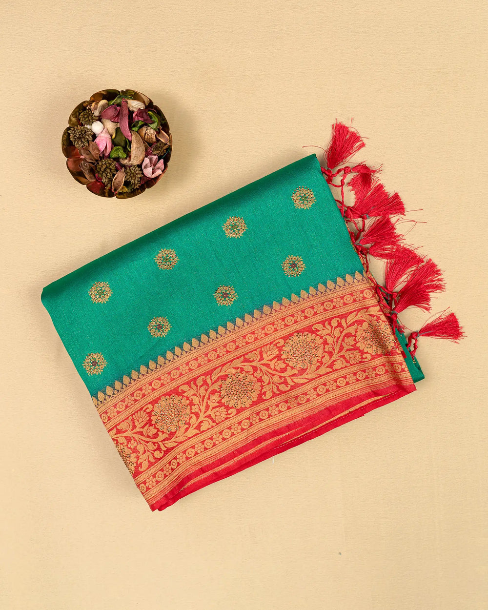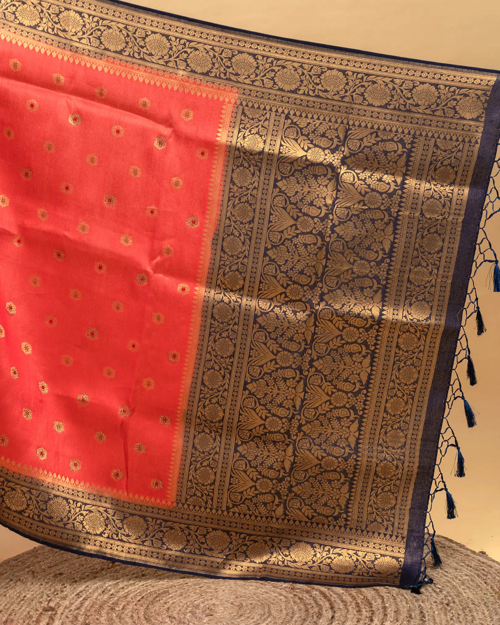 | Blouse | Running embossed blouse that complements the saree’s rich texture and adds an elegant finishing touch |