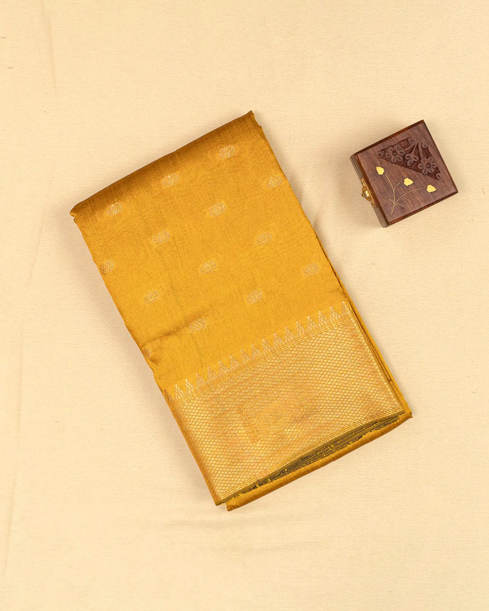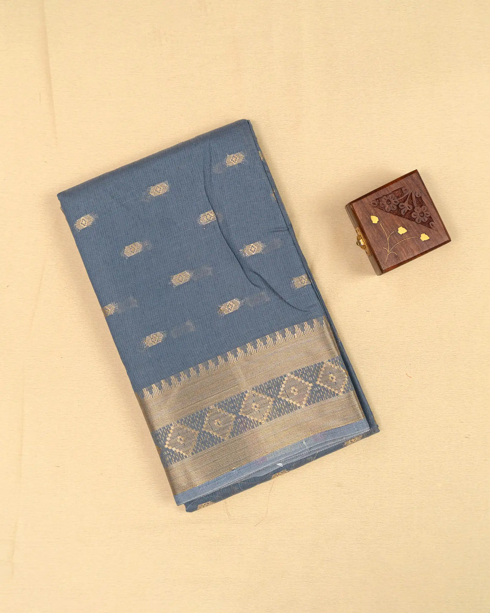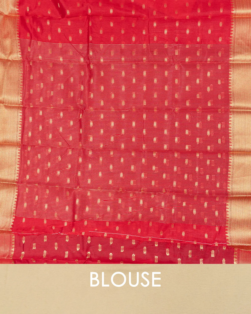 | Blouse | Running blouse adorned with zari lines, complementing the saree’s elegance and enhancing the overall look. |