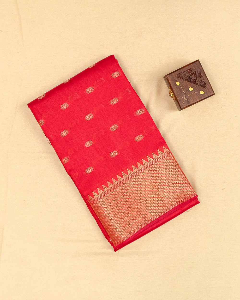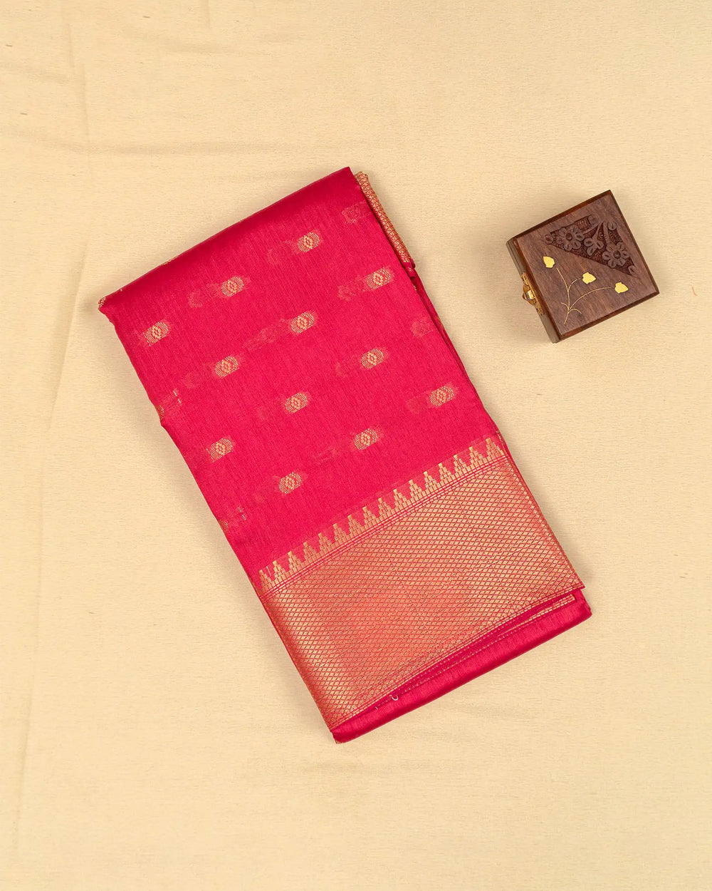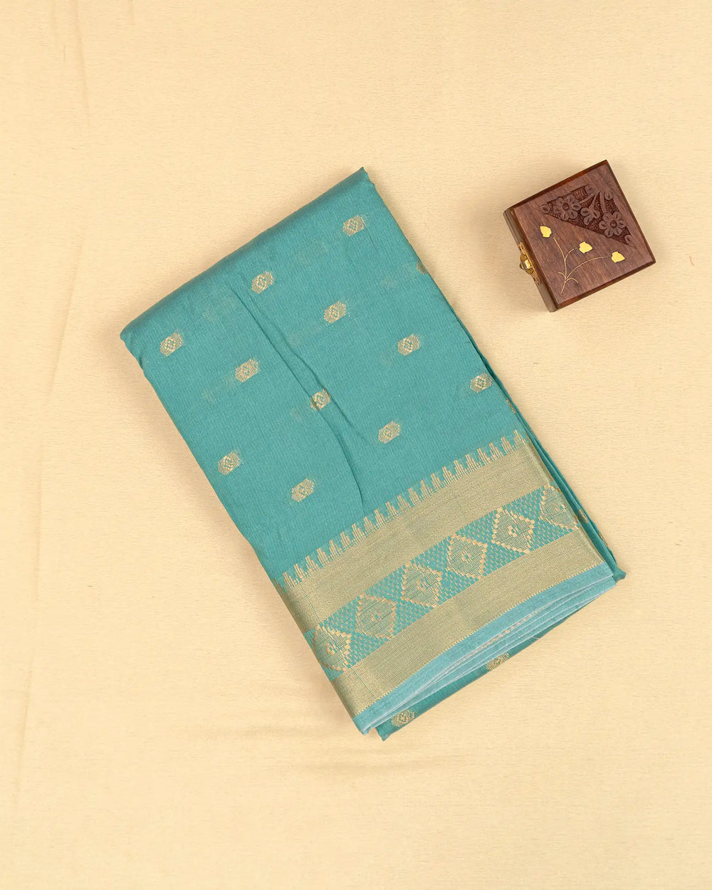 | Blouse | Running blouse adorned with zari lines, complementing the saree’s elegance and enhancing the overall look. |
