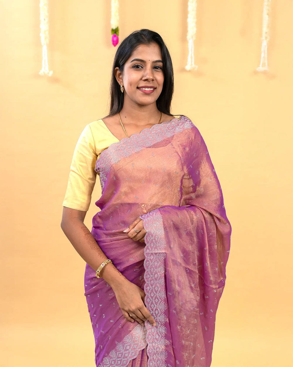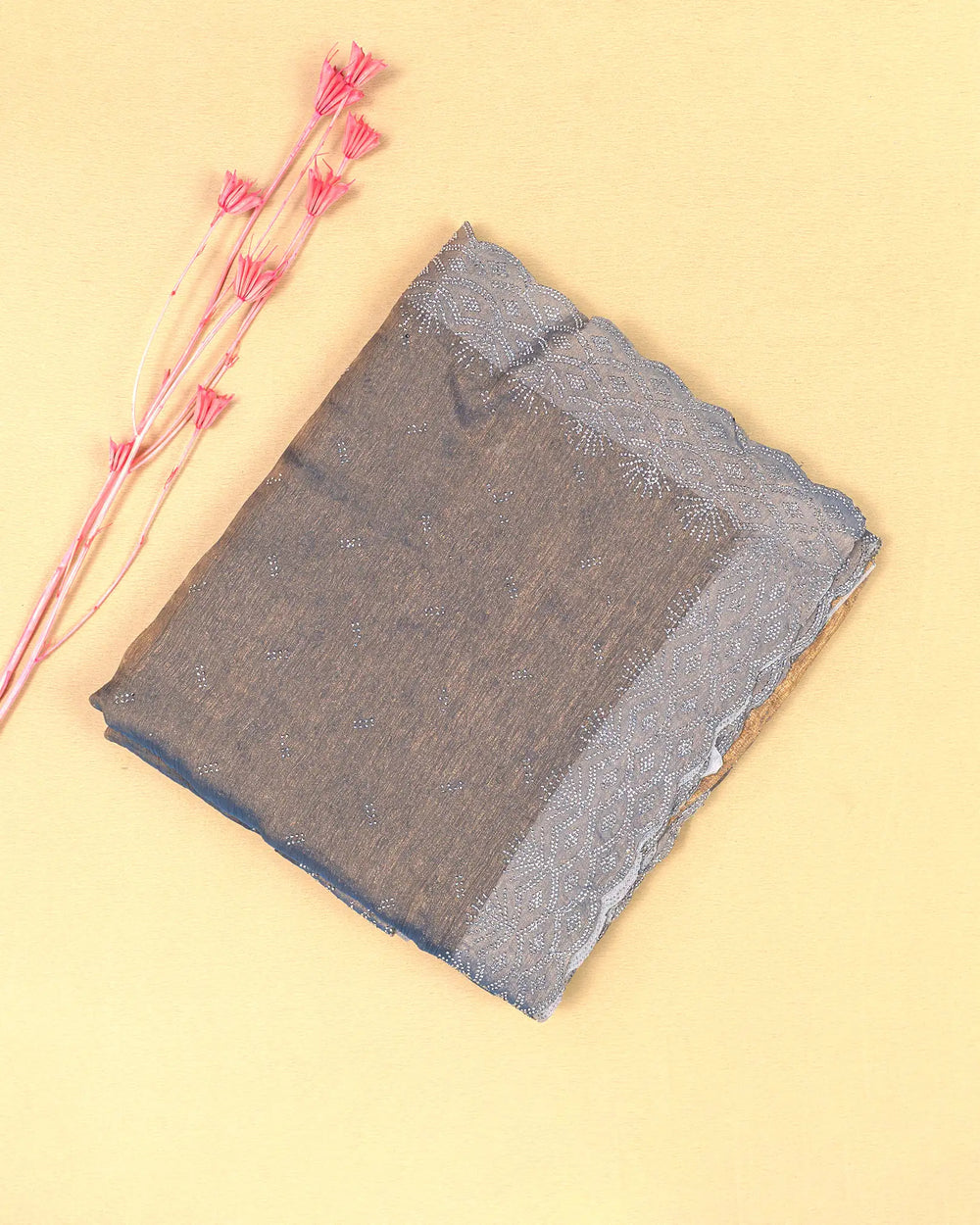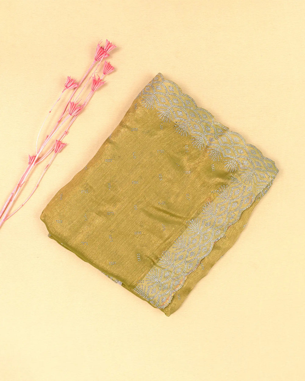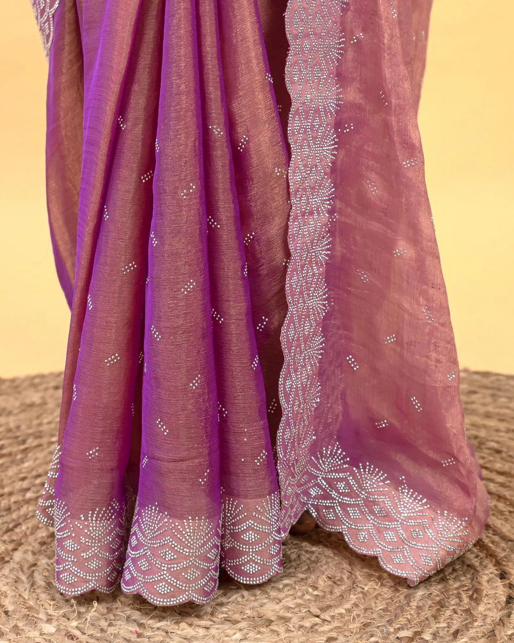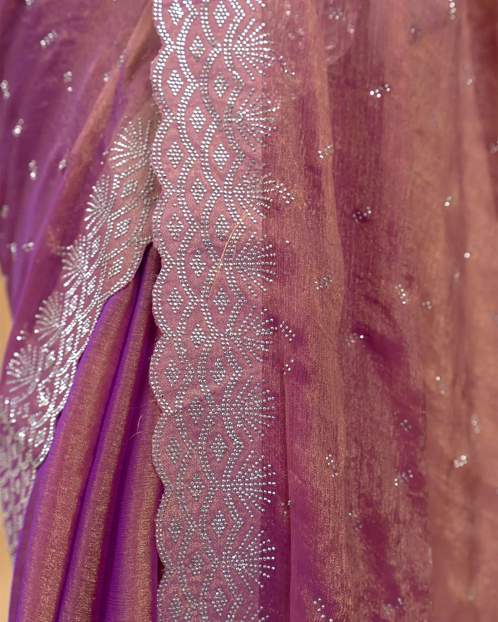 | Description | An exquisite Fendy Crush saree enhanced with dazzling Sarowski stone work that adds brilliance and charm. Perfect for weddings, receptions, and festive occasions. |