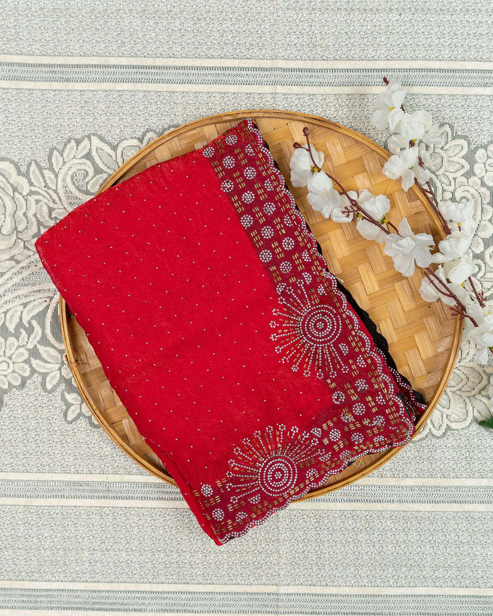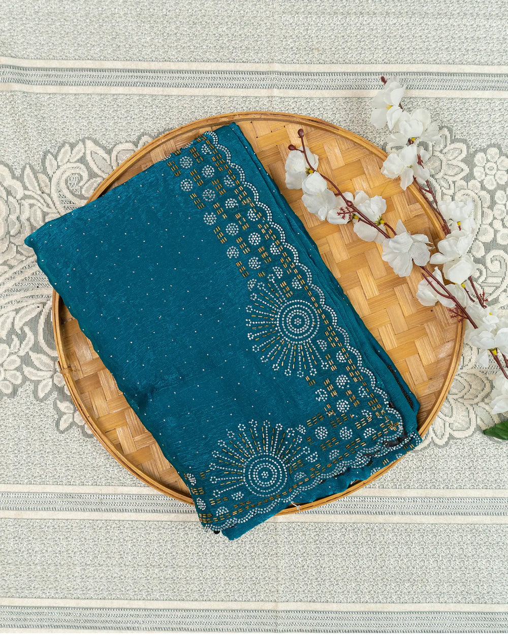 | Description | The Fendy Saree with Jarjoshi work is an exquisite blend of craftsmanship and elegance.making it perfect for weddings, receptions, festive events, and cultural gatherings. |
