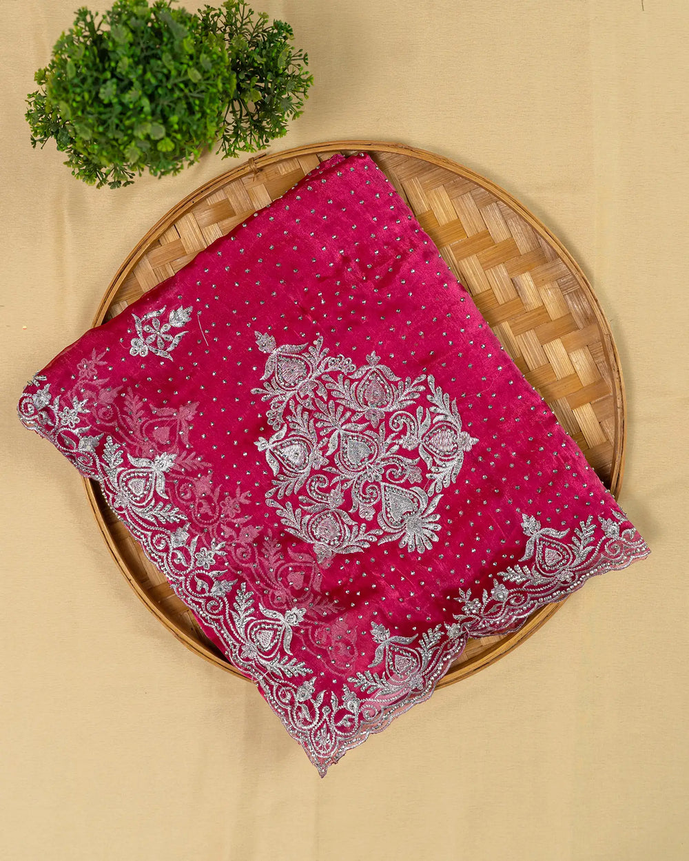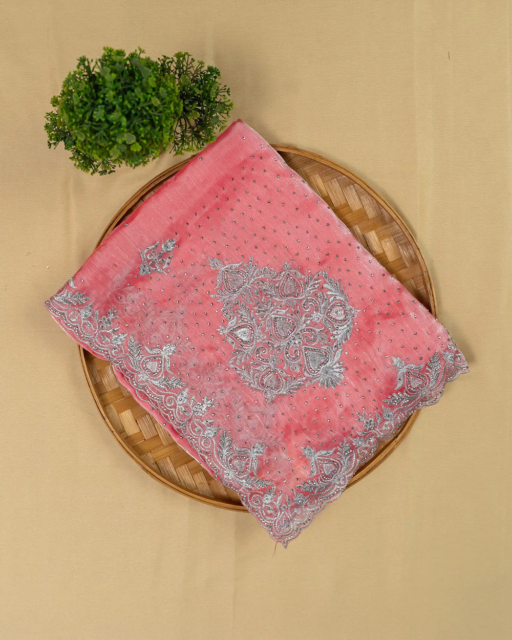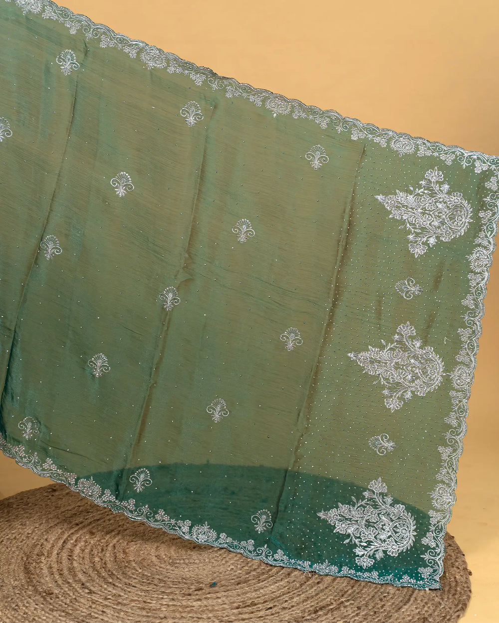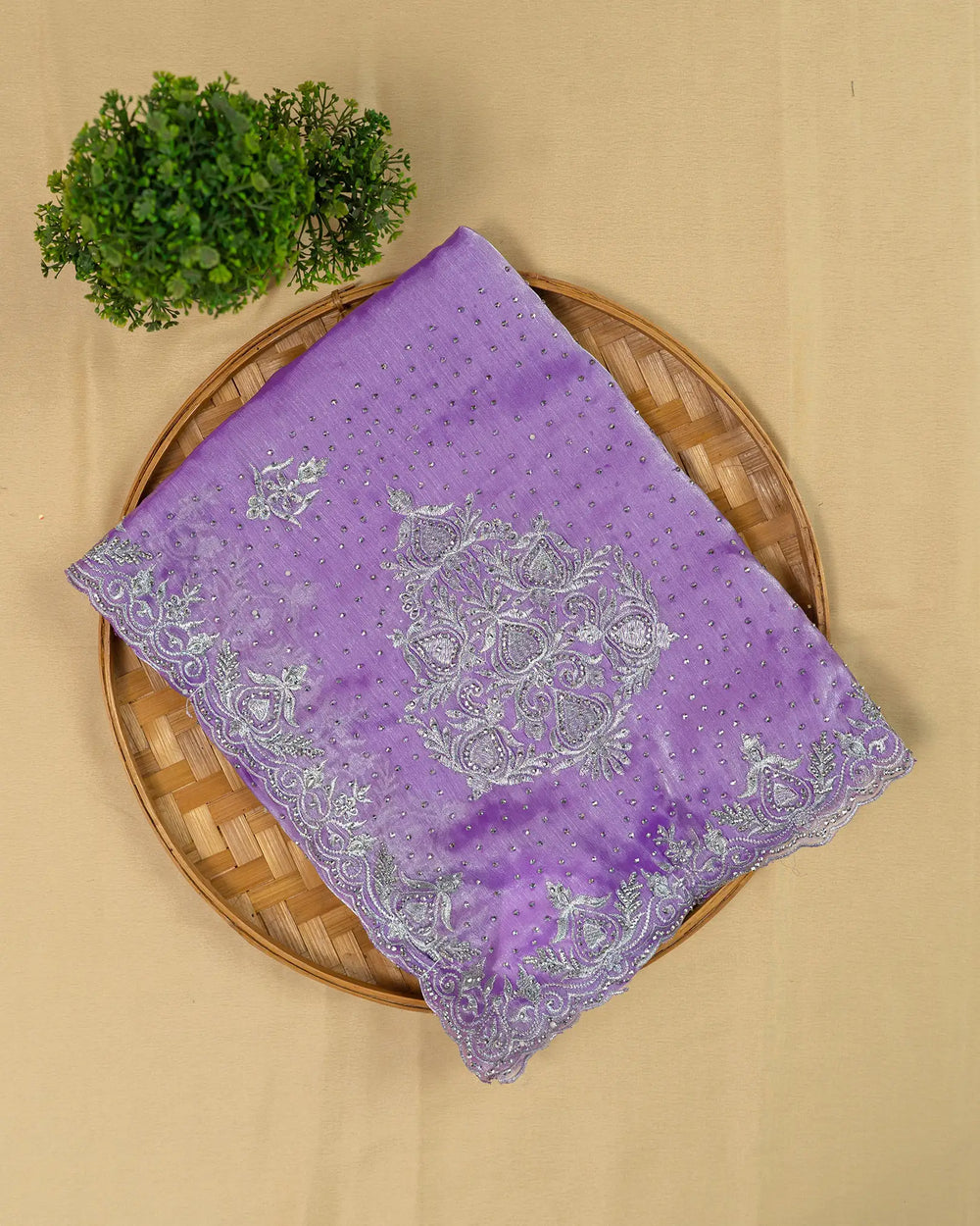 | Description | Elegant Fendy saree adorned with handmade stone detailing, perfect for festive and special occasions. |