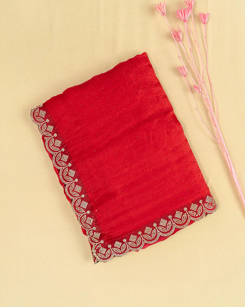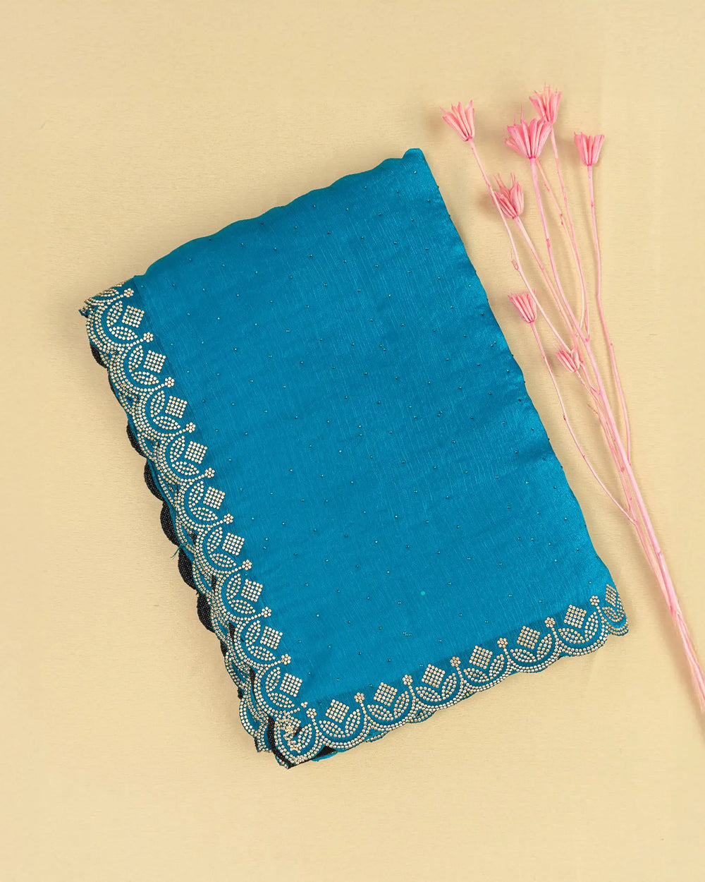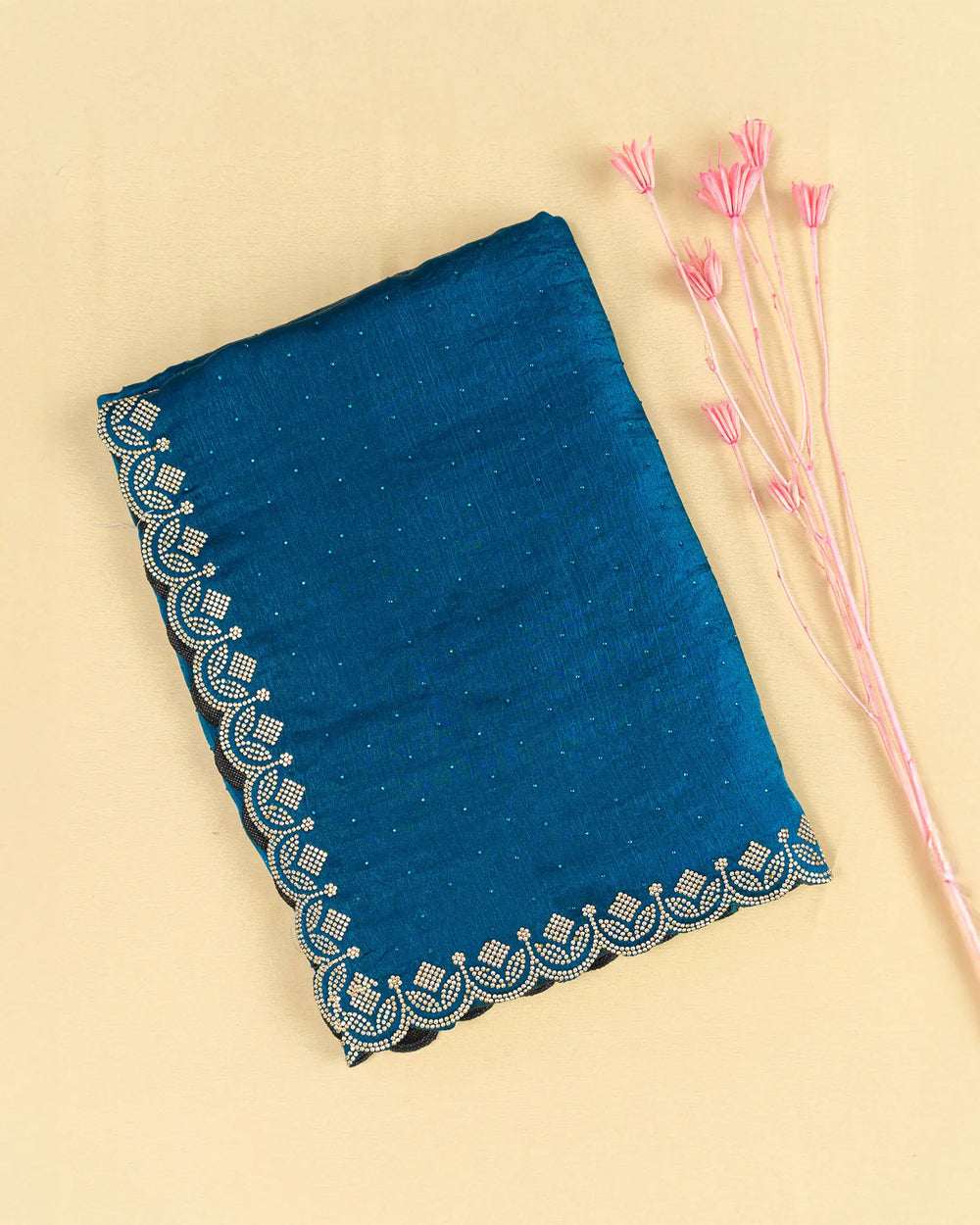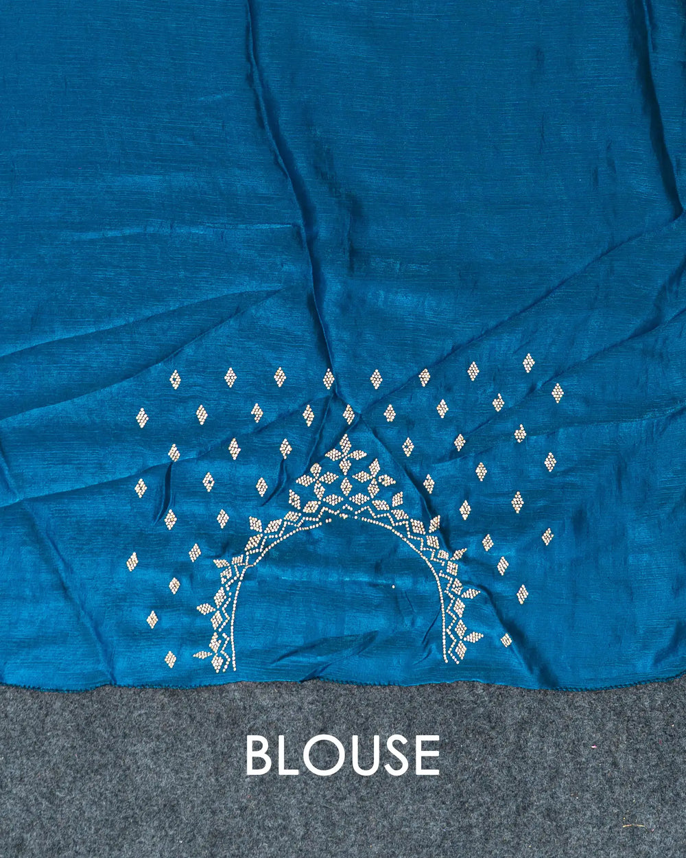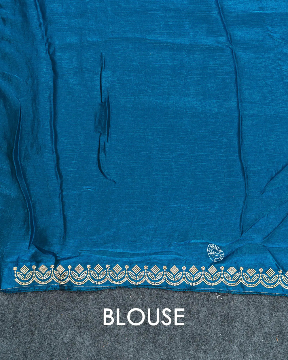 | Blouse | Running blouse featuring Jharkhand stone work along the neck and hands, perfectly complementing the saree’s intricate border design. |