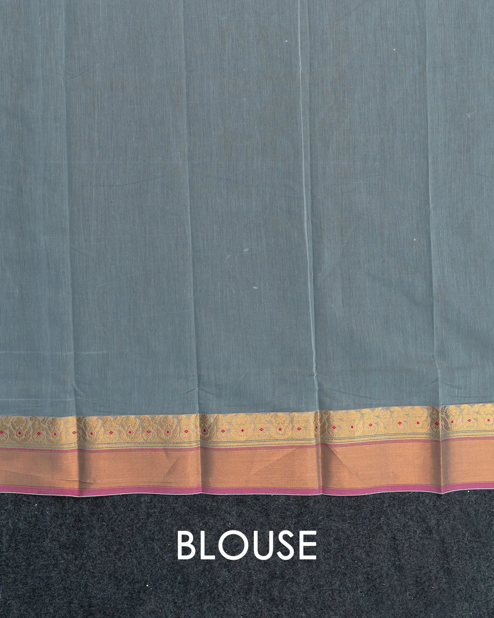 | Description | Elegant linen cotton saree with copper and gold zari detailing, perfect for festive and formal occasions. |
