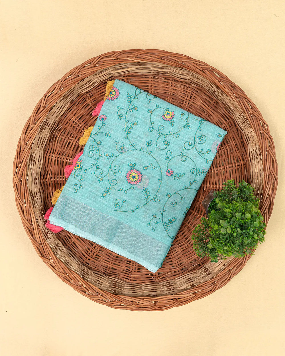 | Description | Linen cotton saree with full body embroidery, offering a sophisticated and elegant look suitable for festive and casual occasions. |