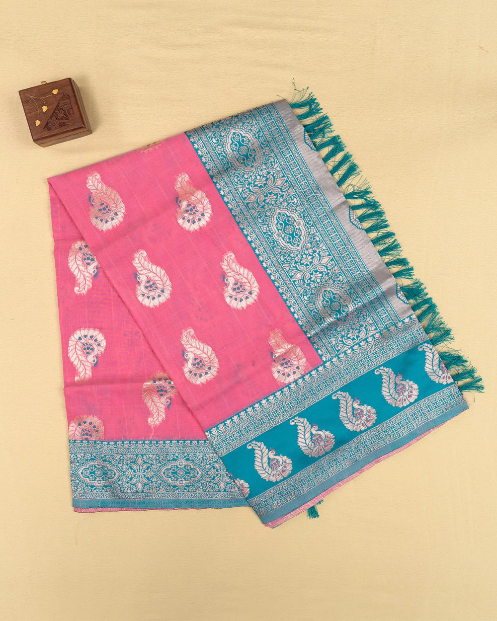 | Style | Rich Meena butta weaving brings traditional elegance, while the subtle sheen of the linen cotton blend adds a contemporary touch |