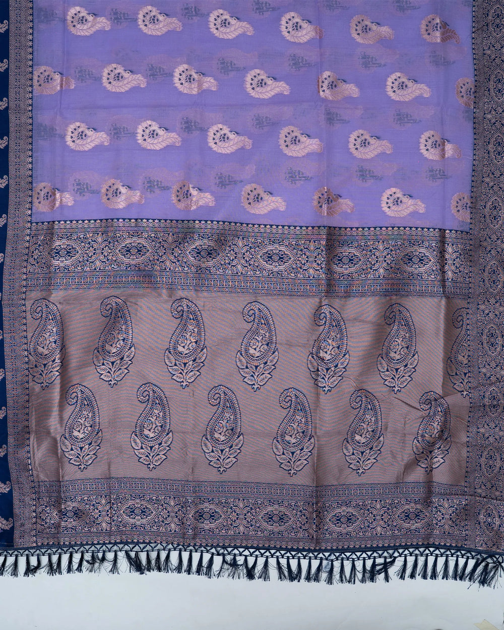 | Blouse | Contrast blouse with delicate embose butta, designed to complement the rich Meena butta detailing of the saree |