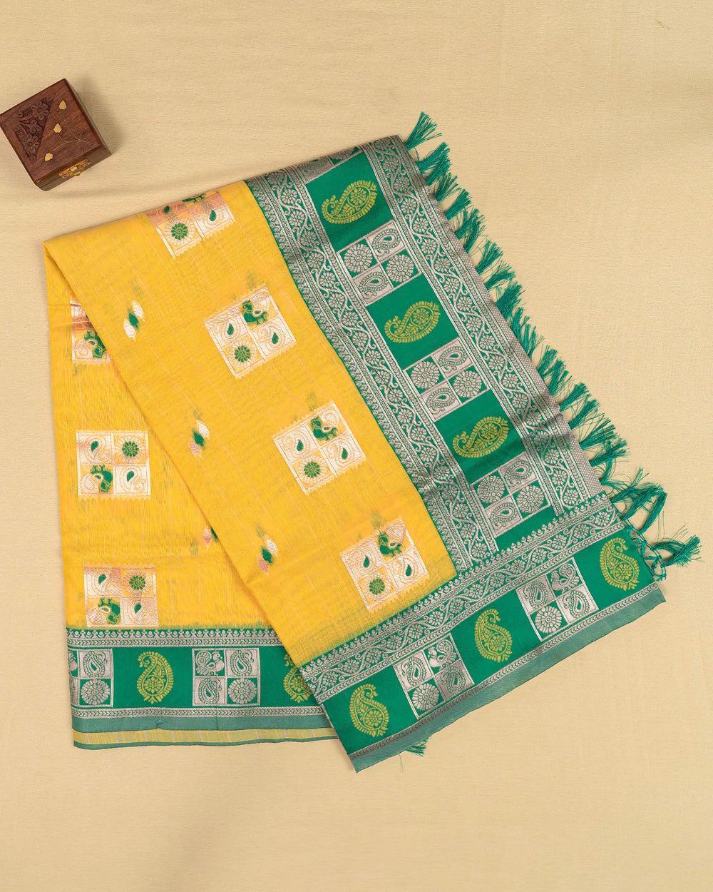 | Description | Elegant linen cotton saree detailed with intricate Meena butta work, combining the airy comfort of linen with the soft texture of cotton. Perfect for festive gatherings, traditional events, and refined everyday wear with a touch of heritage artistry. |