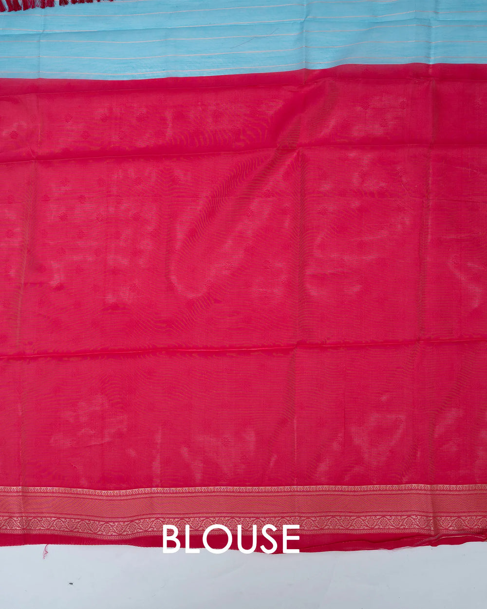 | Blouse | Contrast blouse with delicate embose butta, designed to complement the rich Meena butta detailing of the saree |