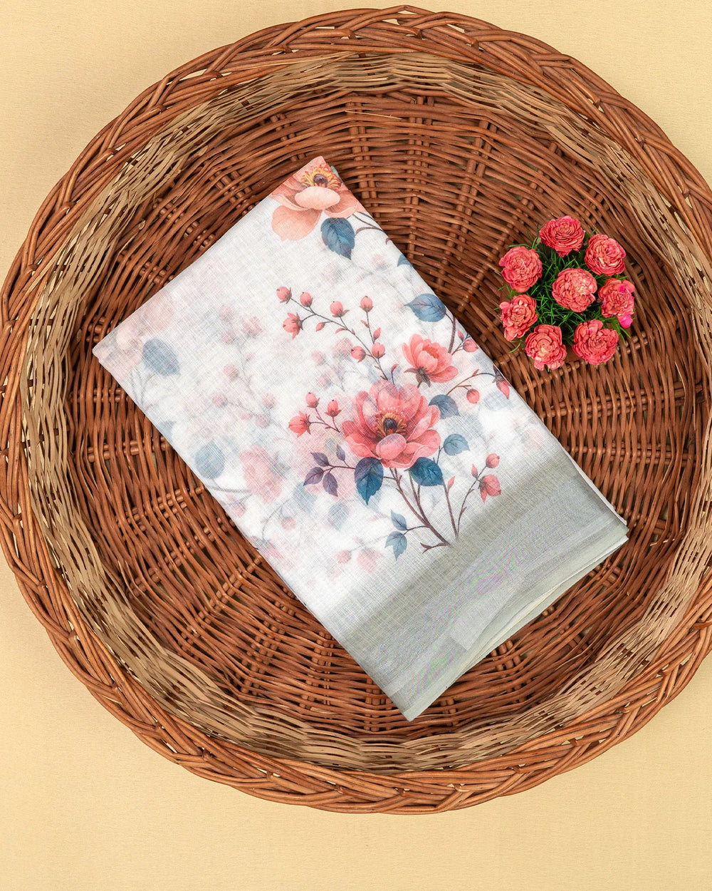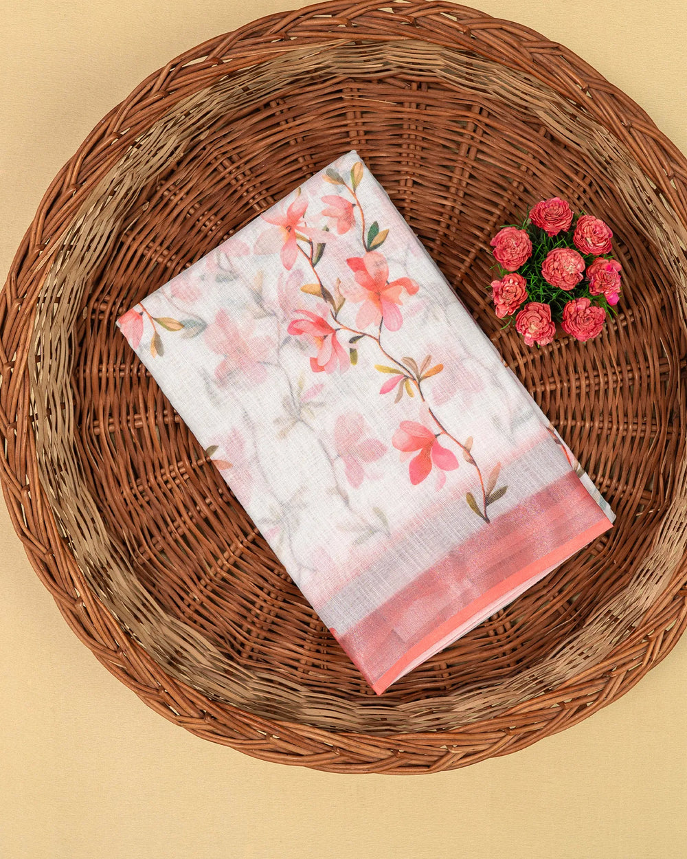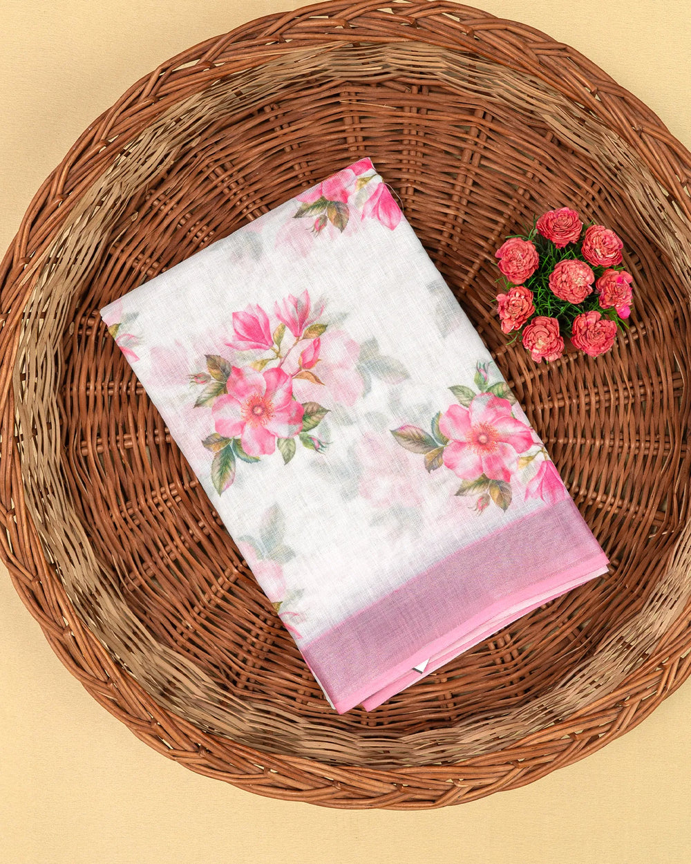| Description | Stylish linen saree with vibrant digital prints on a white base, offering a contemporary and chic look perfect for casual events, brunches, and festive occasions. |