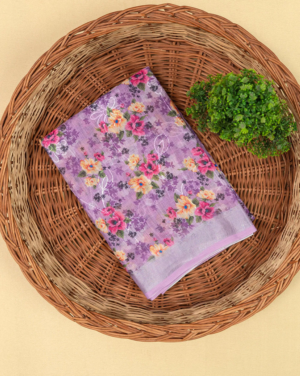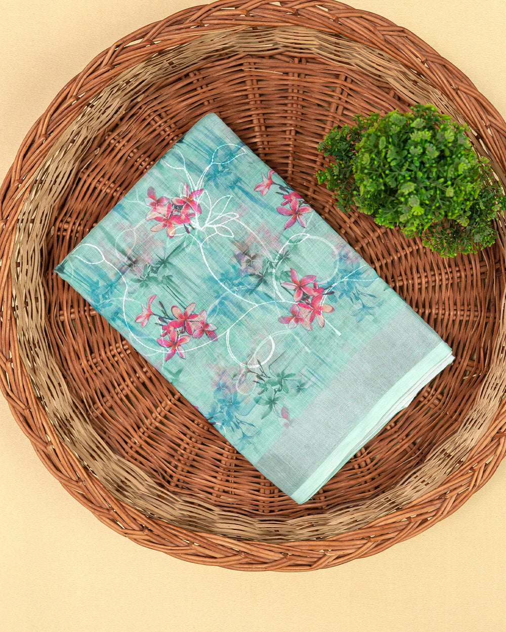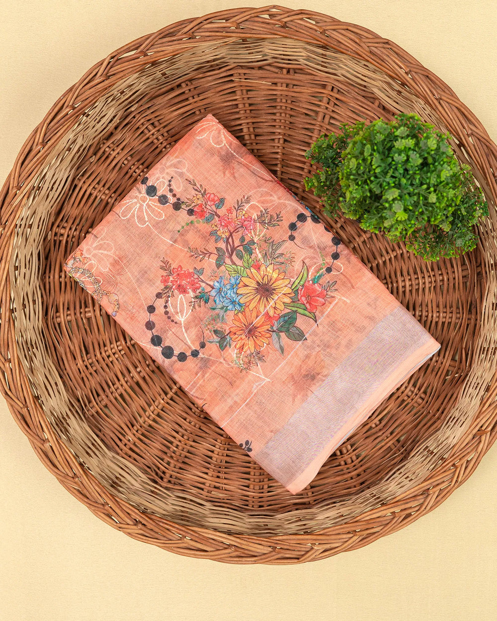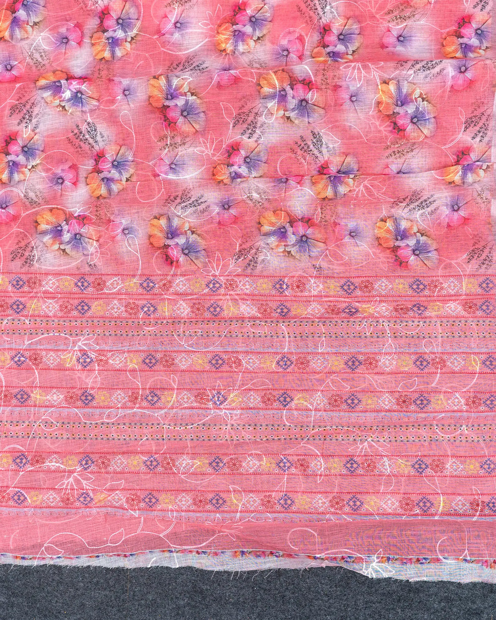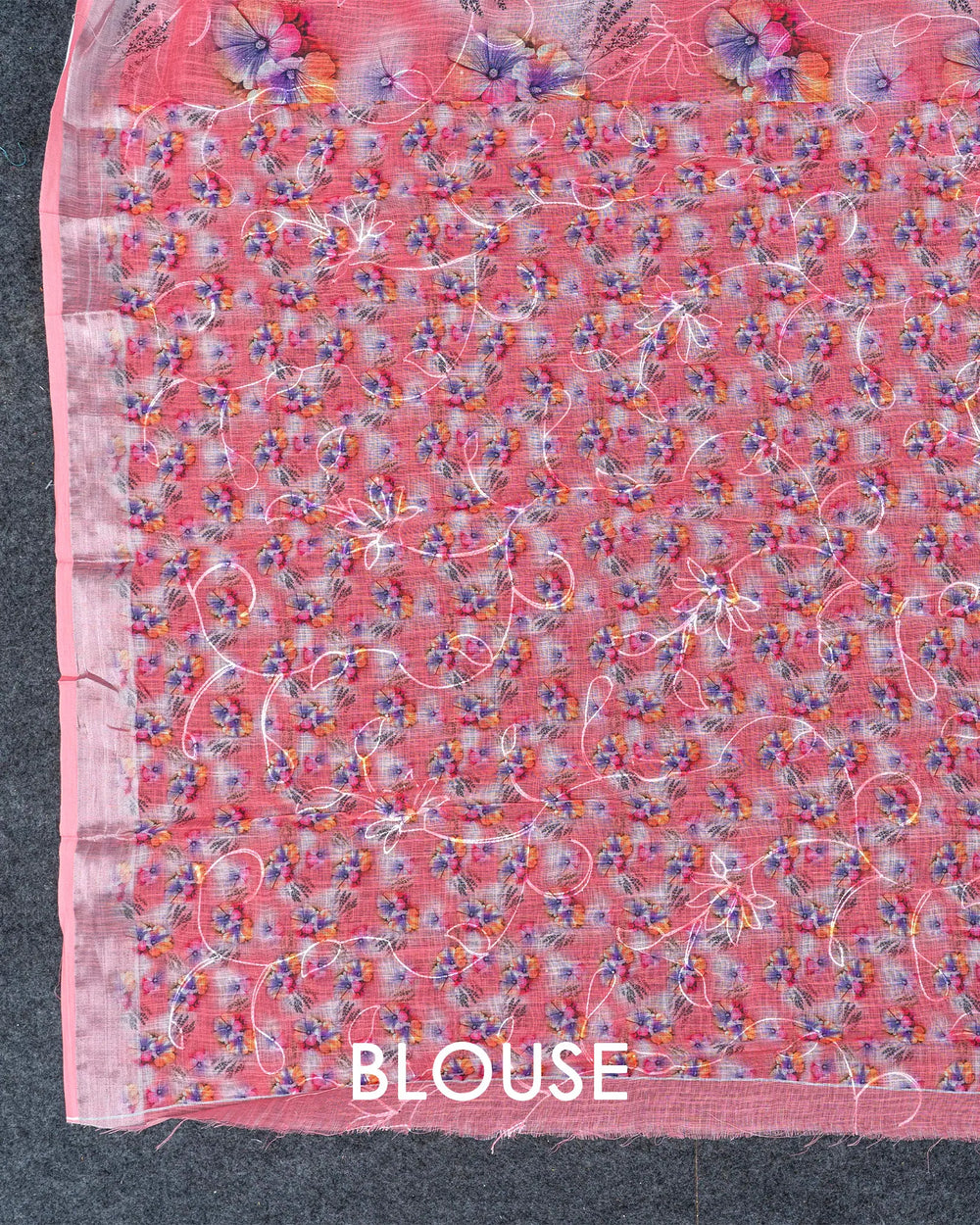 | Description | Elegant linen saree featuring a vibrant digital print with exquisite embroidery all over the body, making it perfect for weddings, festive occasions, and casual gatherings. |