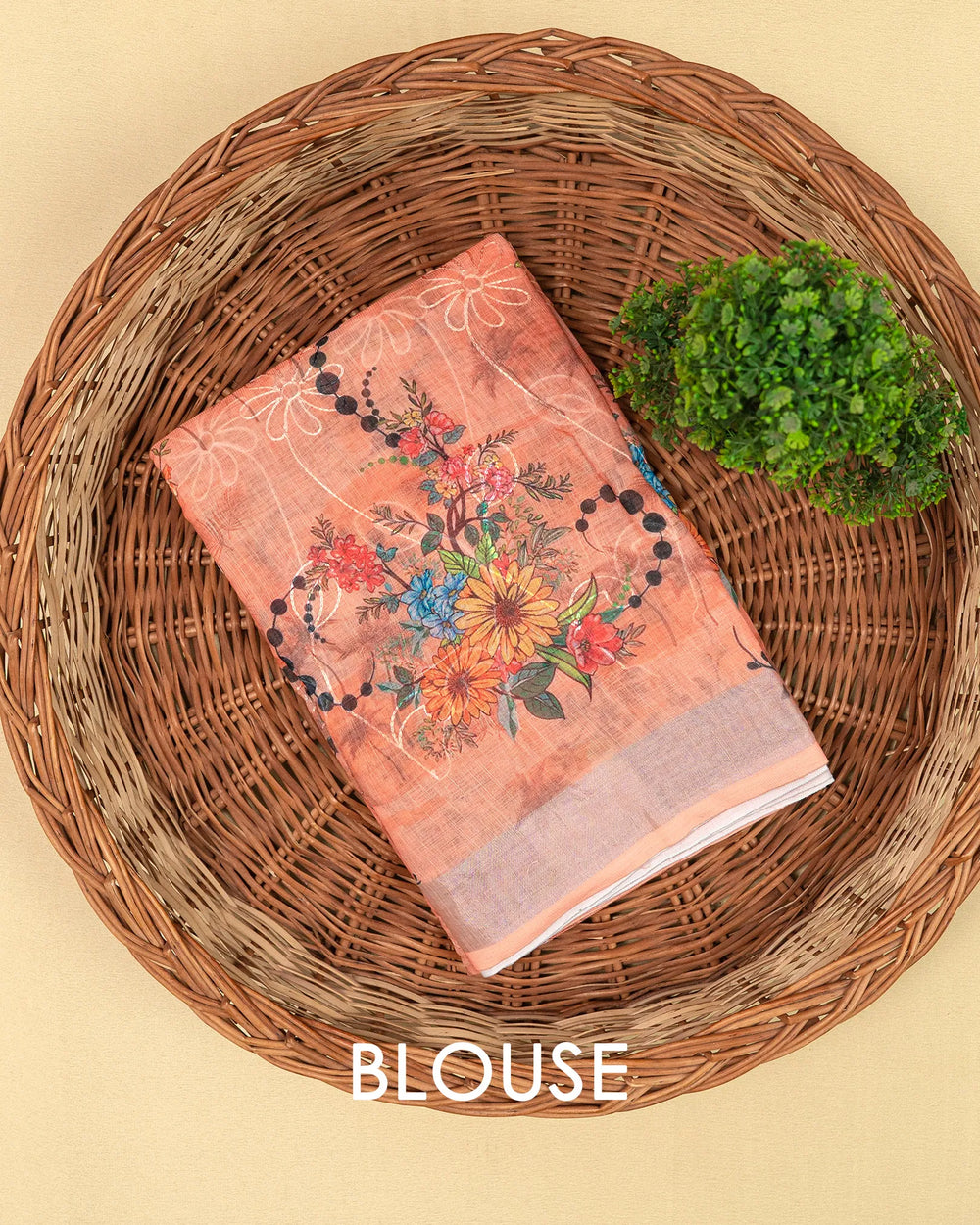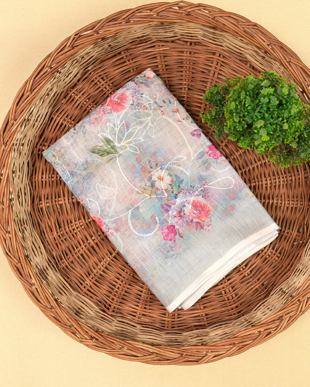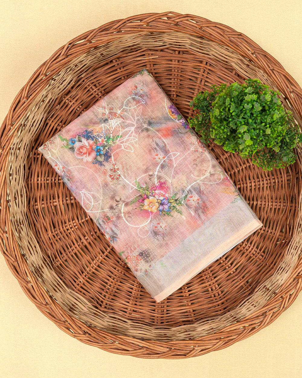 | Description | Elegant linen saree featuring a vibrant digital print with exquisite embroidery all over the body, making it perfect for weddings, festive occasions, and casual gatherings. |