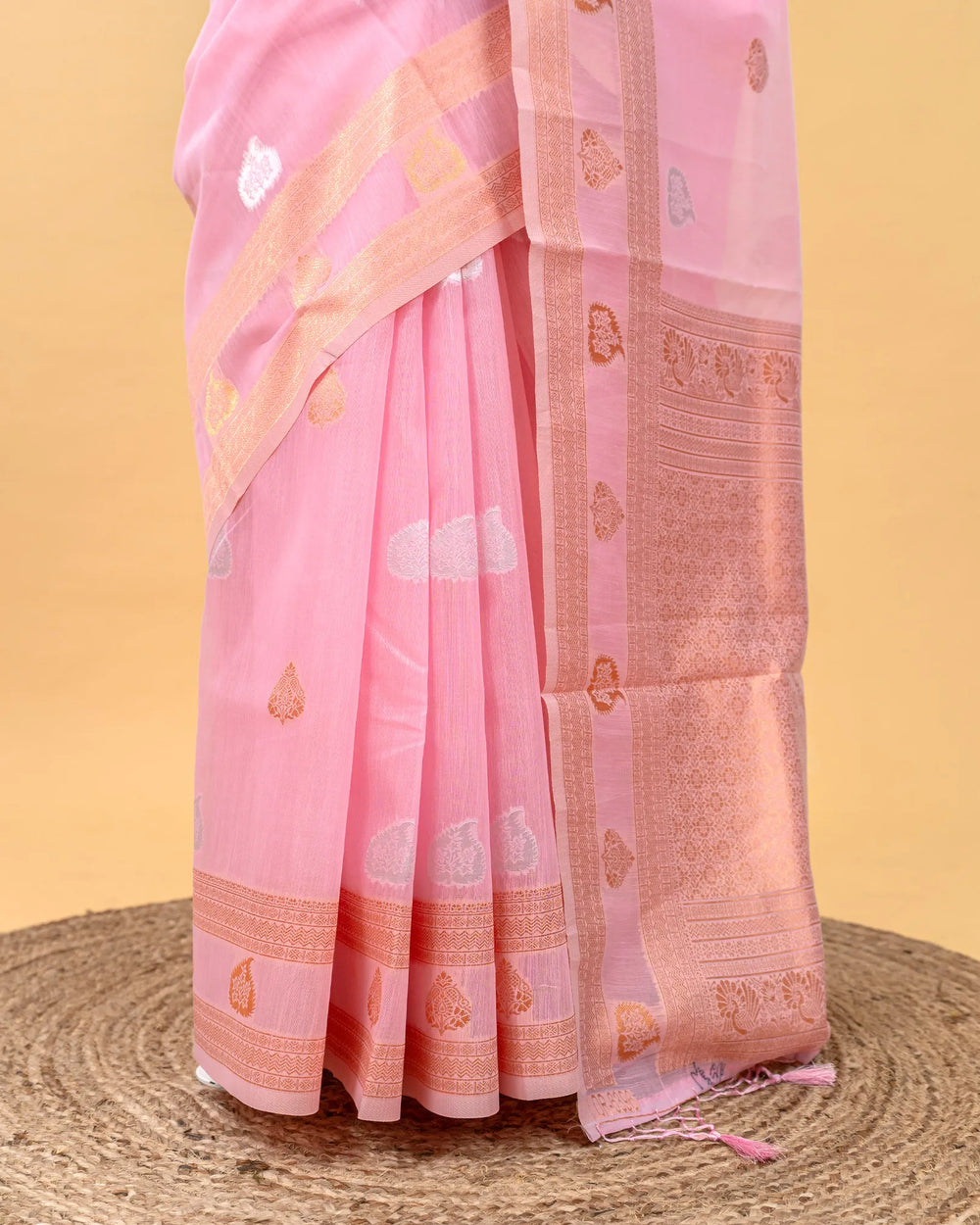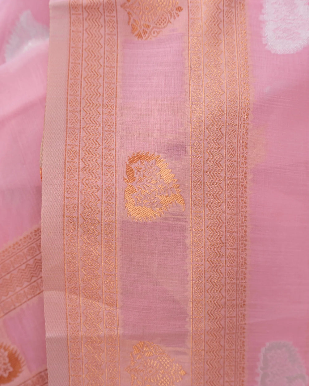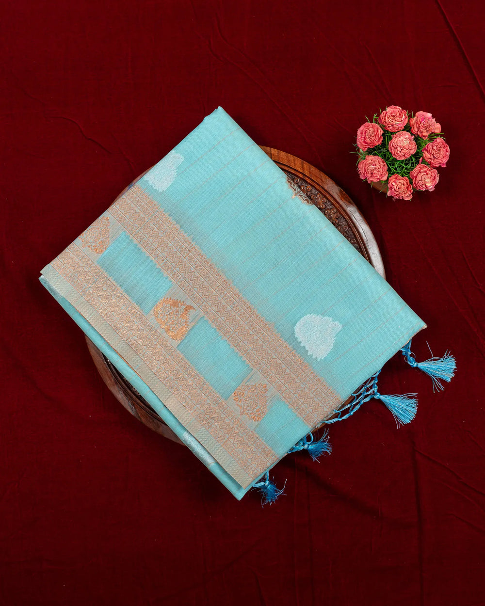 | Description | Elegant linen saree featuring intricate copper and silver butta motifs across the body, offering a subtle shimmer and timeless appeal. Perfect for festive gatherings and sophisticated everyday wear. |