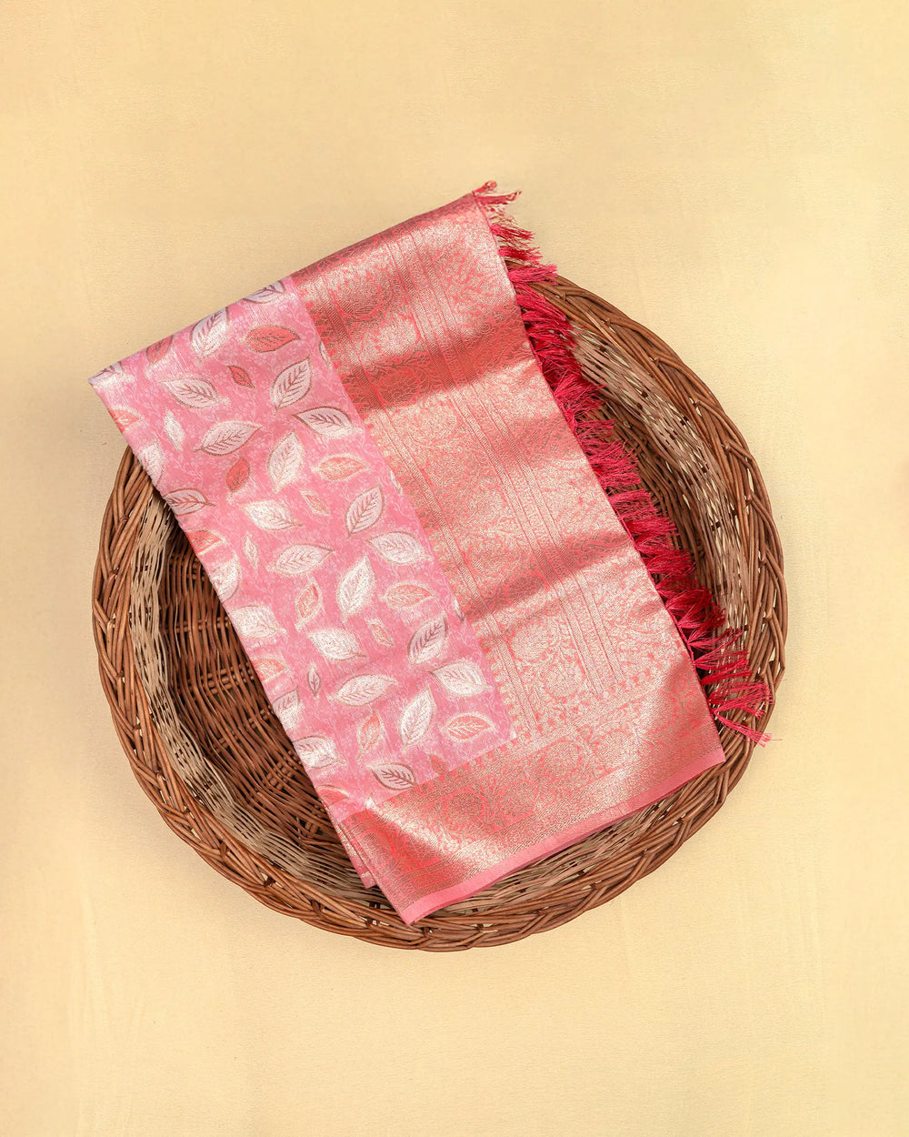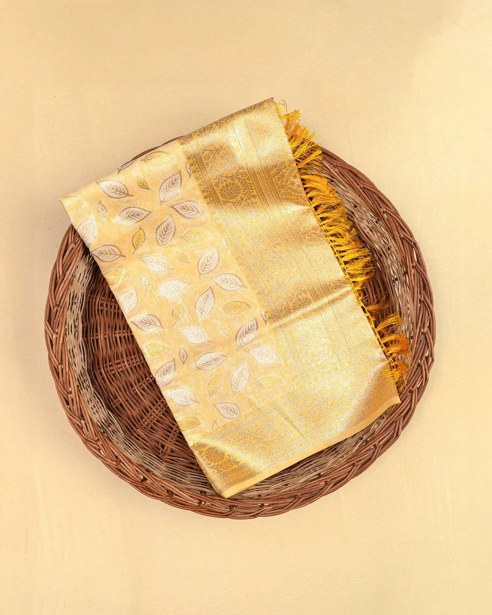 | Blouse | Running embossed blouse, seamlessly complementing the saree’s foil weaving, adding texture and a refined finishing touch to the look. |