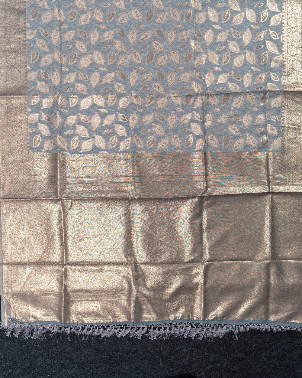 | Description | Elegant linen saree with intricate foil weaving, offering a modern yet traditional appeal, perfect for festive and semi-formal occasions. |