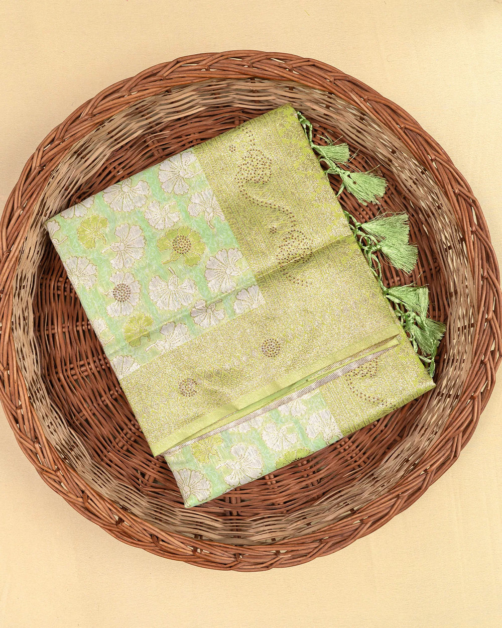| Blouse | Running weaving blouse, seamlessly complementing the saree’s design and enhancing its elegant finish with a cohesive look. |