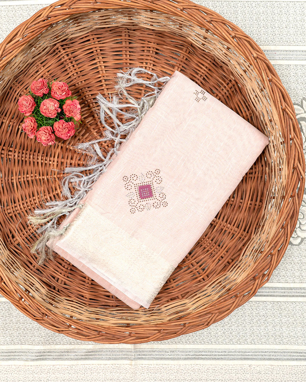 | Description | A graceful linen saree decorated with delicate multi-stone embellishments, blending natural texture with festive sparkle. Perfect for celebrations, cultural gatherings, and elegant day or evening wear. |