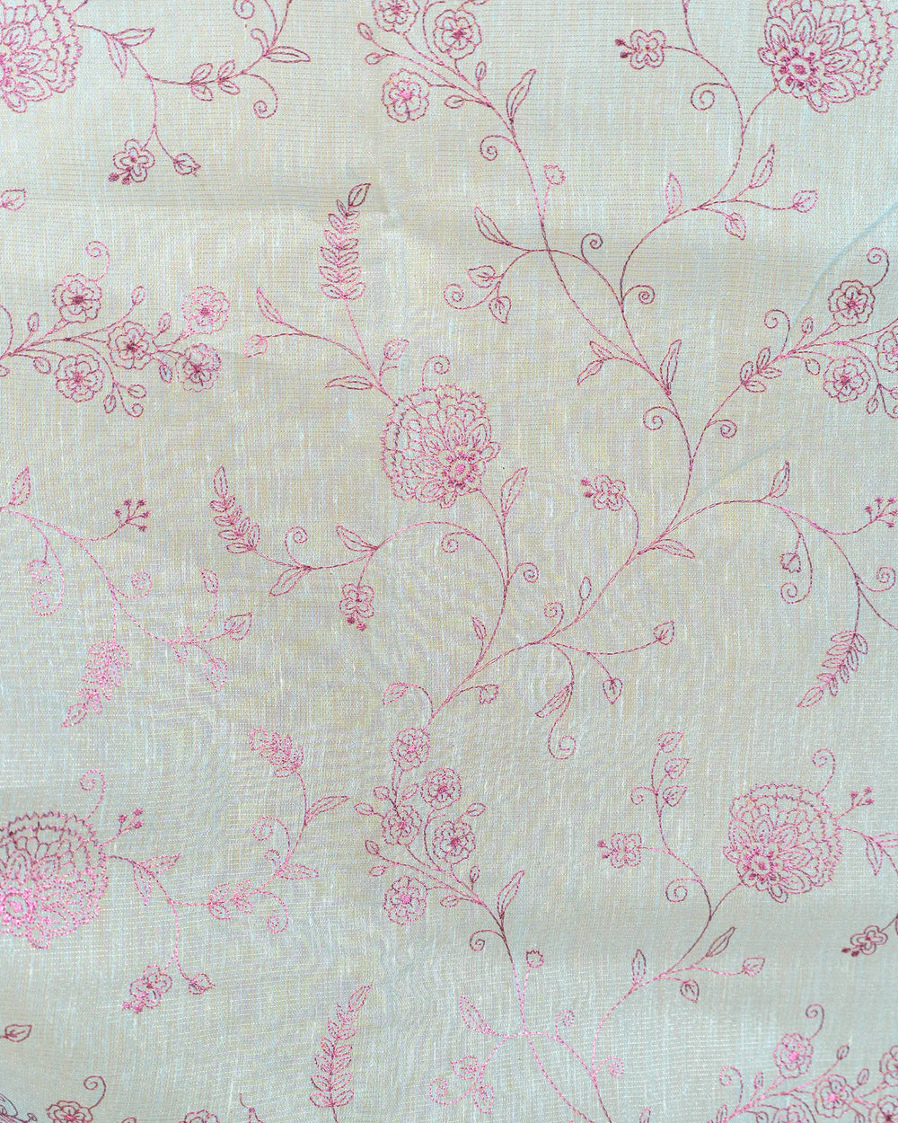 | Style | All-over pink embroidery enhances the serene linen base, creating a charming and elegant look suitable for both casual and festive occasions |