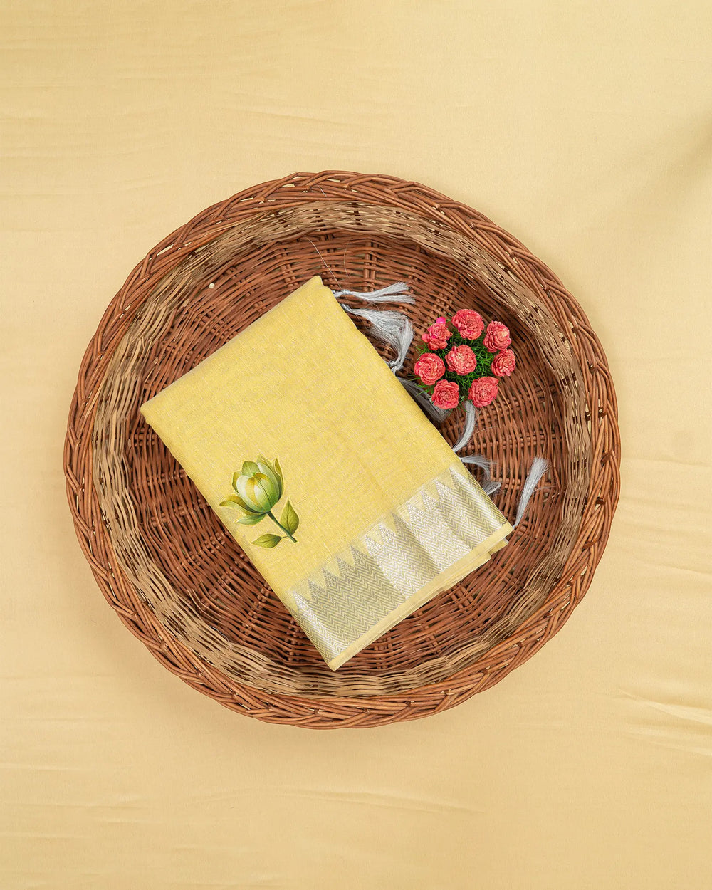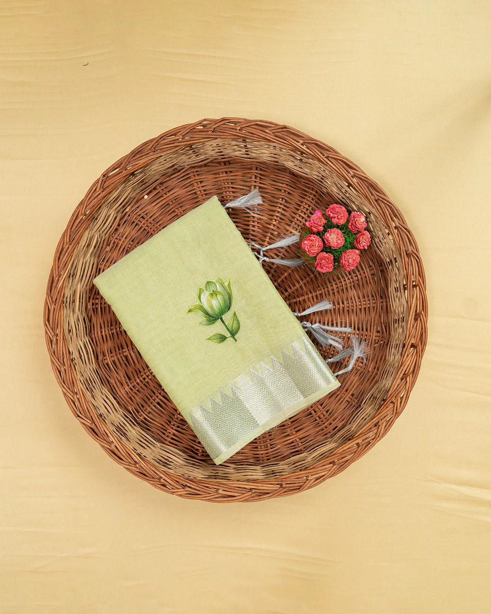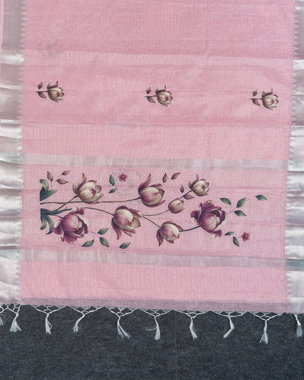 | Description | Elegant linen saree featuring beautiful sticker print work that adds a modern artistic touch to the classic linen texture. |