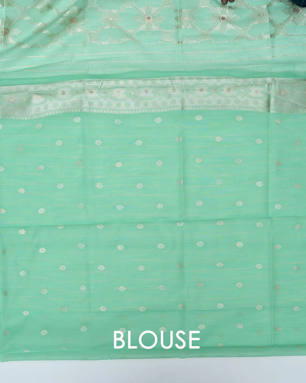 | Blouse | Running blouse with delicate butta weaving, designed to complement the refined thread butta and neem zari detailing of the saree |