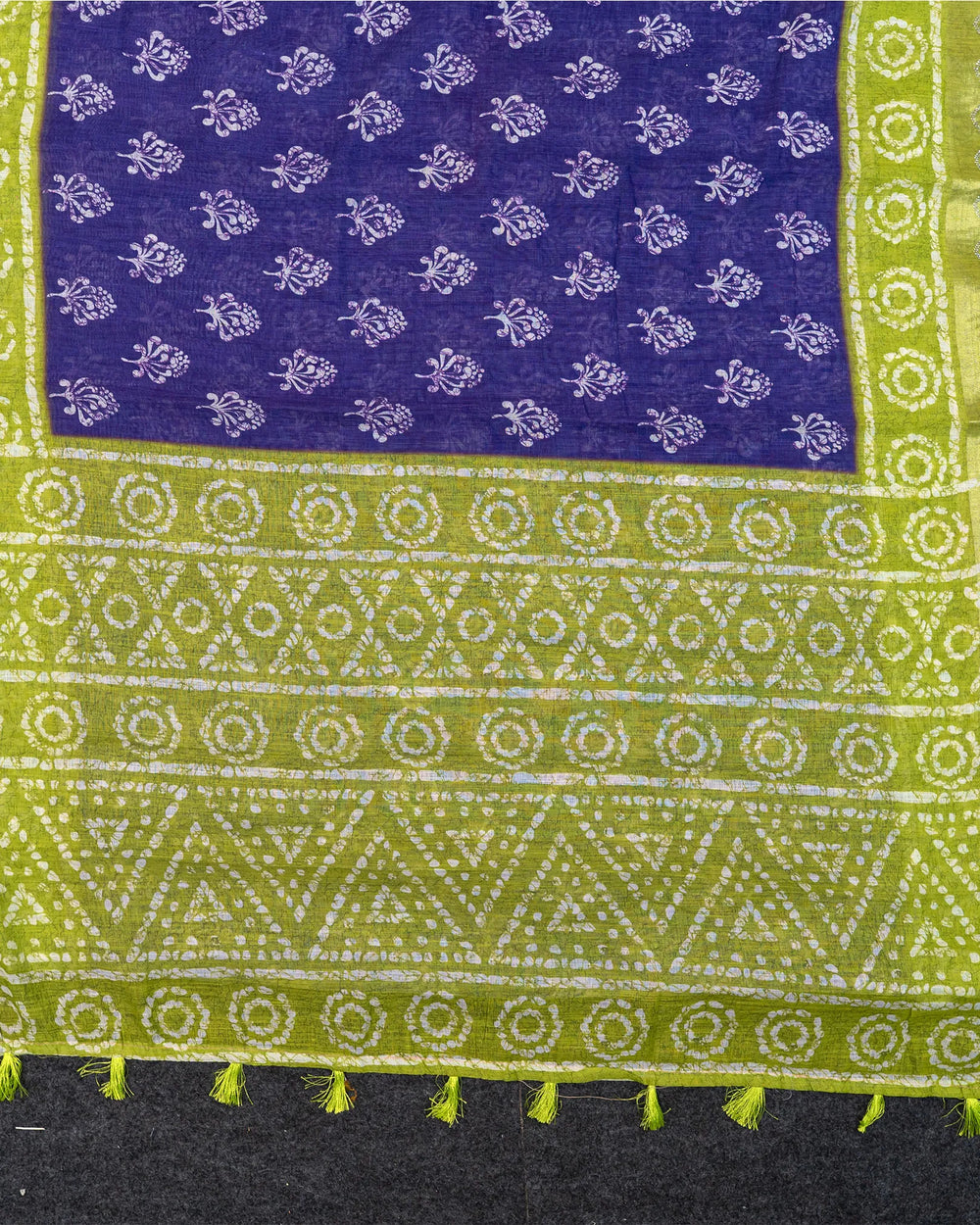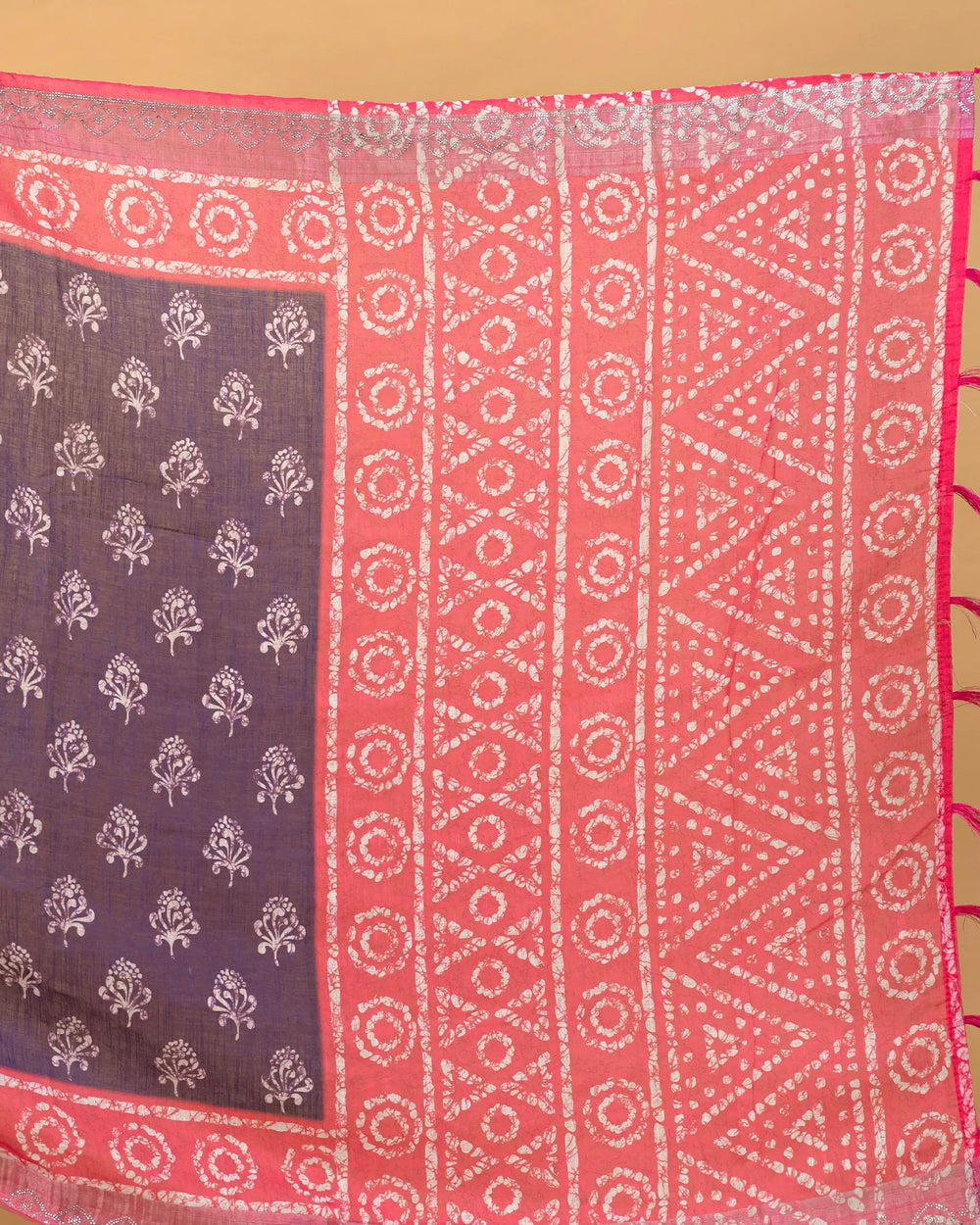 | Description | Elegant linen saree featuring traditional Bandhini print enhanced with sparkling border stone work. Perfect for weddings, festive gatherings, and cultural occasions where heritage artistry meets subtle glamour. |