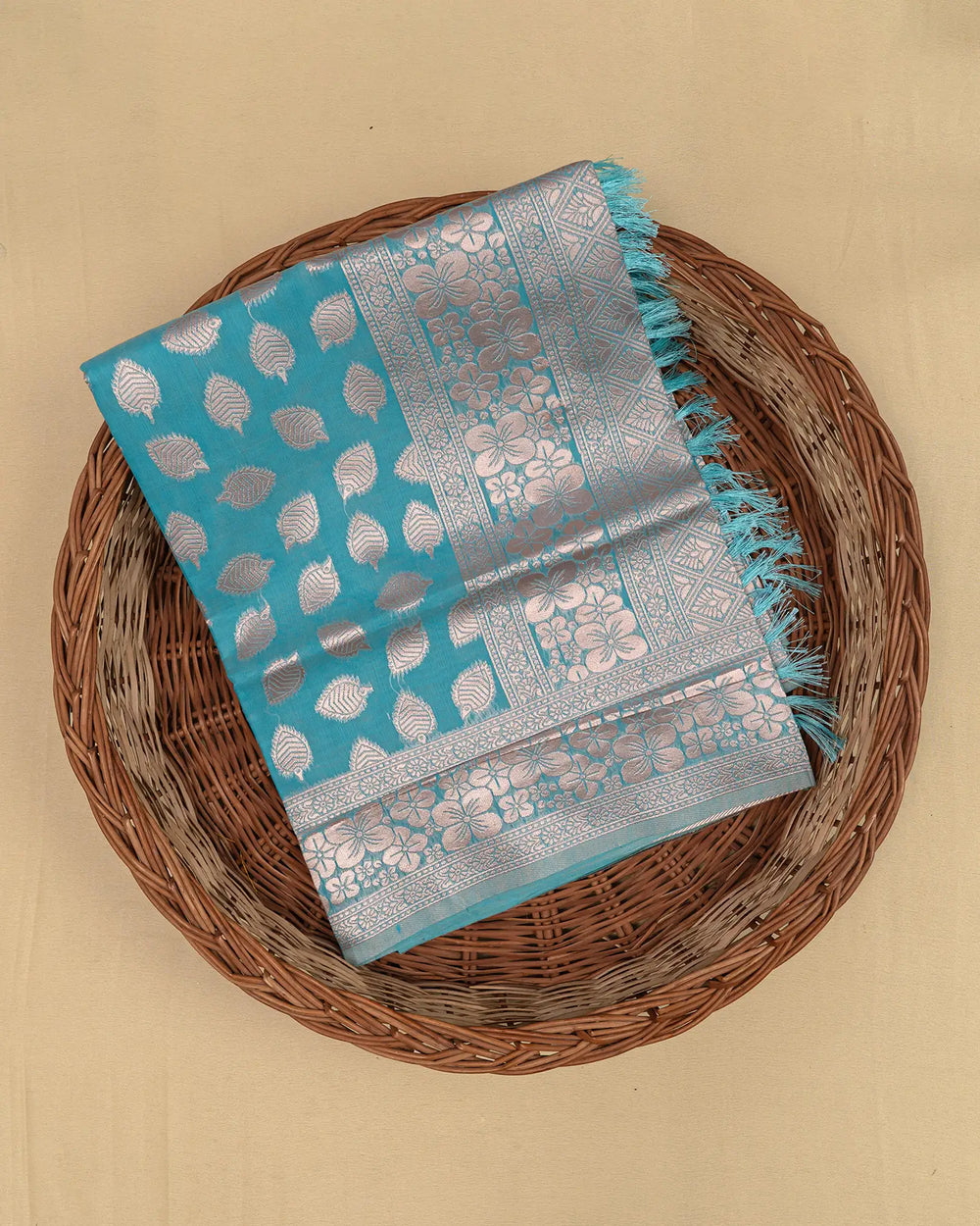 | Style | Simple yet classy saree featuring traditional copper butta artistry — perfect for understated festive elegance. |