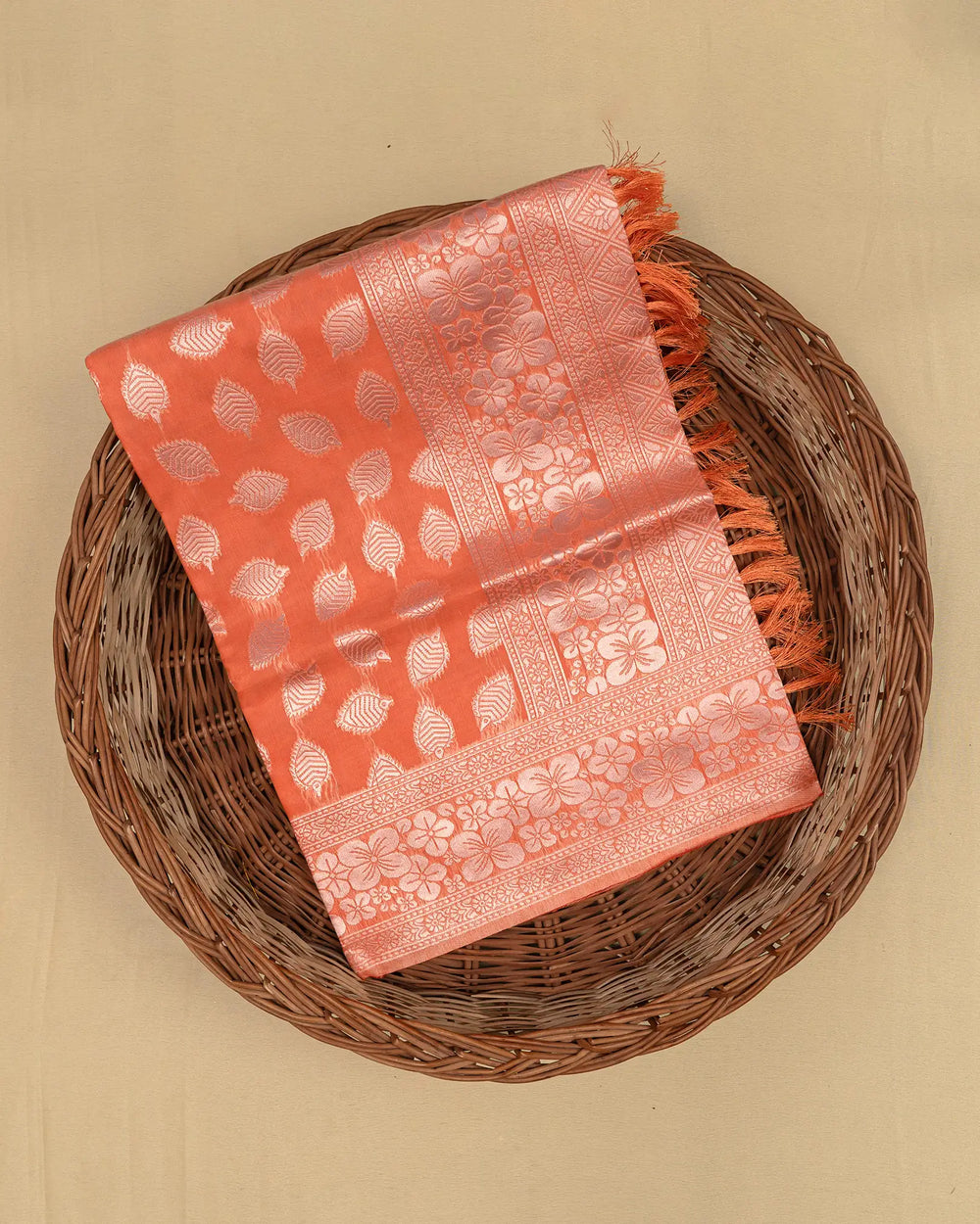| Blouse | Running plain blouse that perfectly complements the saree’s refined copper butta work for a balanced and elegant appearance. |