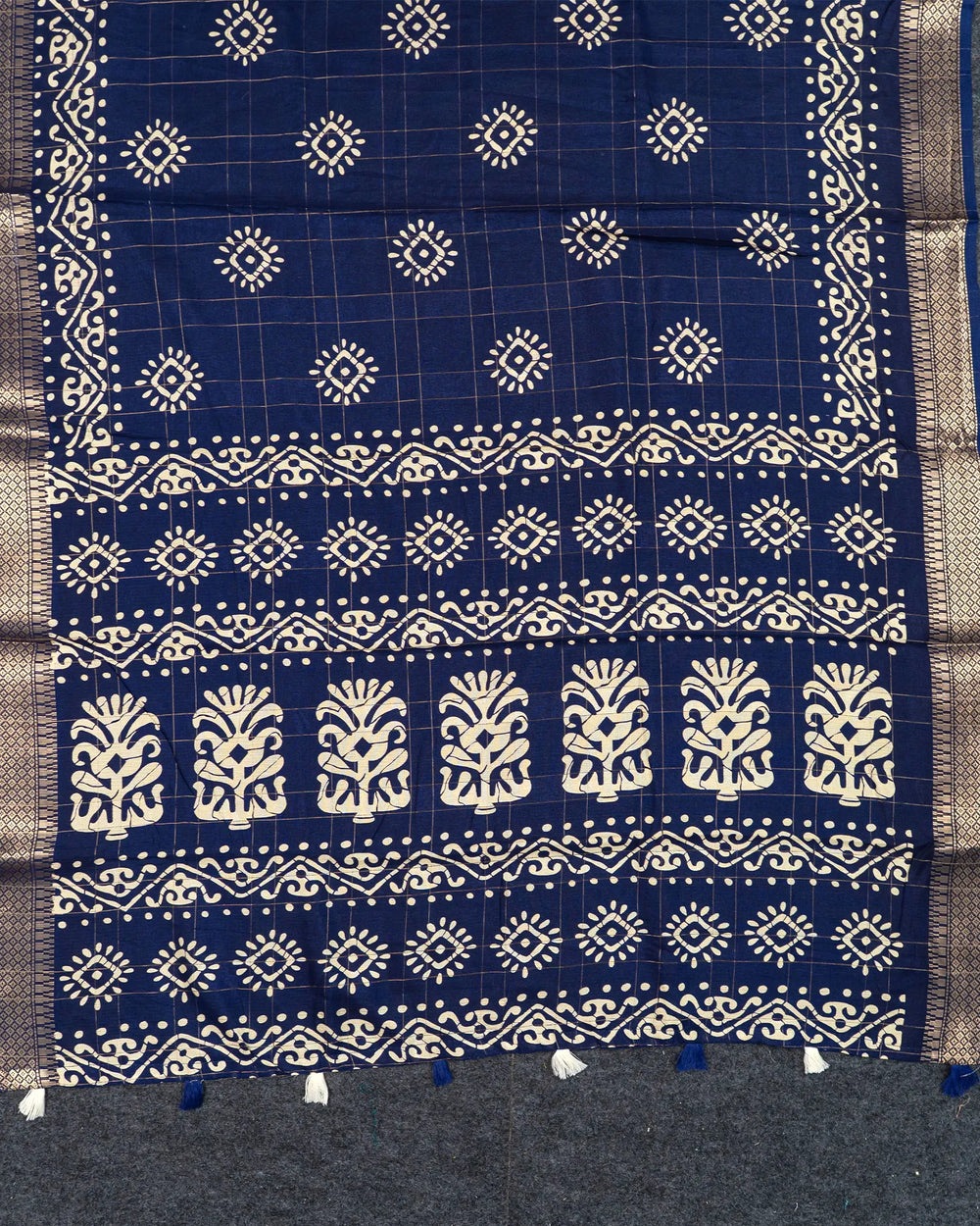| Style | Classic Bandhini motifs enhanced through digital printing and checked blouse design for a striking festive look |
