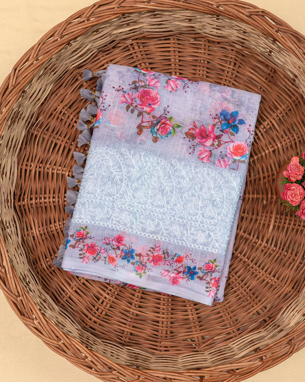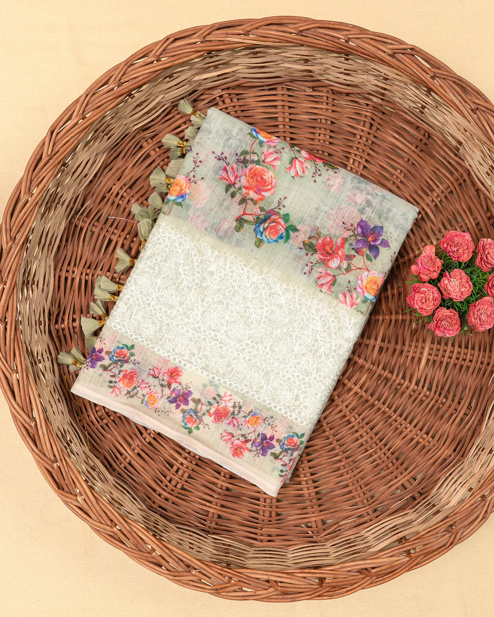| Description | A refined linen saree adorned with elegant embroidery along the border, giving it a graceful and timeless appeal. Perfect for festive occasions, traditional gatherings, and semi-formal celebrations. |