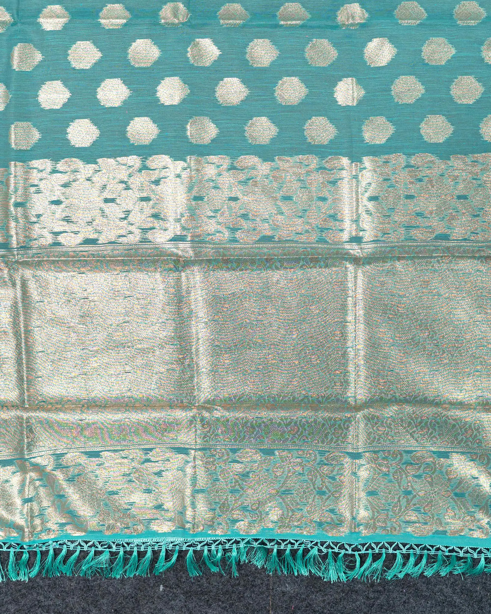 | Description | Elegant linen saree adorned with subtle gold butta work, offering a perfect blend of simplicity and sophistication ideal for festive and casual wear. |