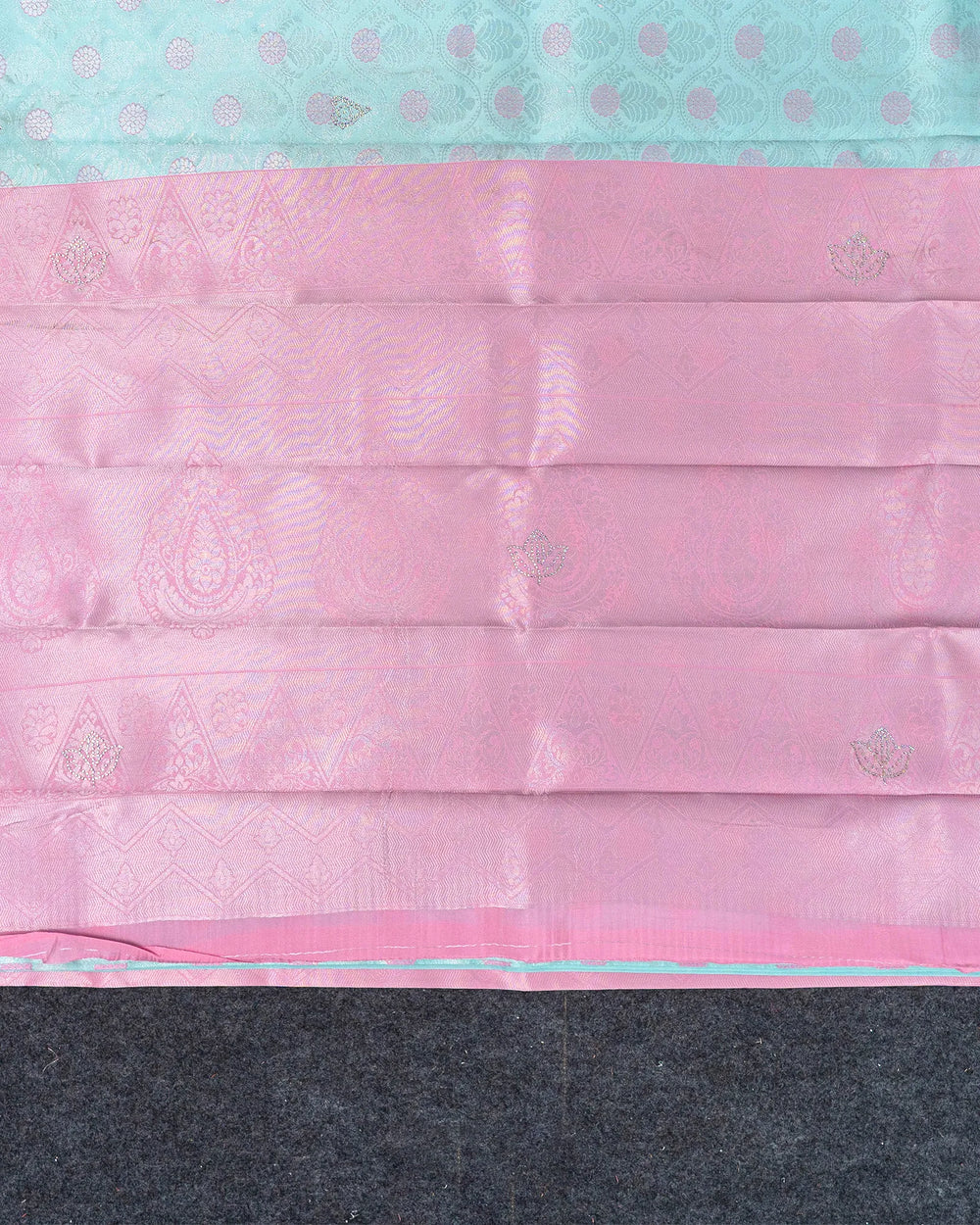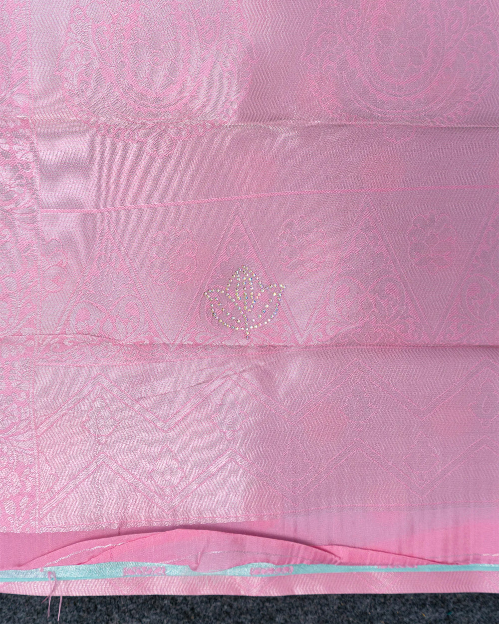 | Blouse | Running jaquard blouse designed to complement the saree's stone detailing, providing a clean and elegant finish to the ensemble. |