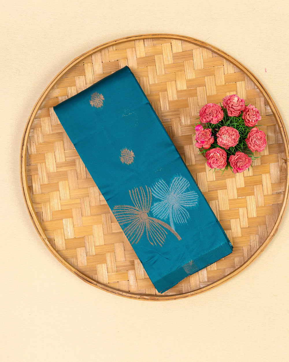 | Blouse | Running plain blouse designed to complement the saree’s emboss and zari detailing, creating a clean and refined finish to the overall ensemble. |