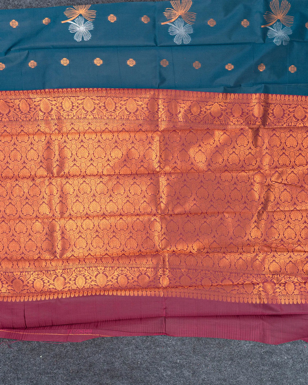 | Style | Traditional silk saree enhanced with beautiful emboss and zari work, ideal for adding sophistication and grace to any occasion. |