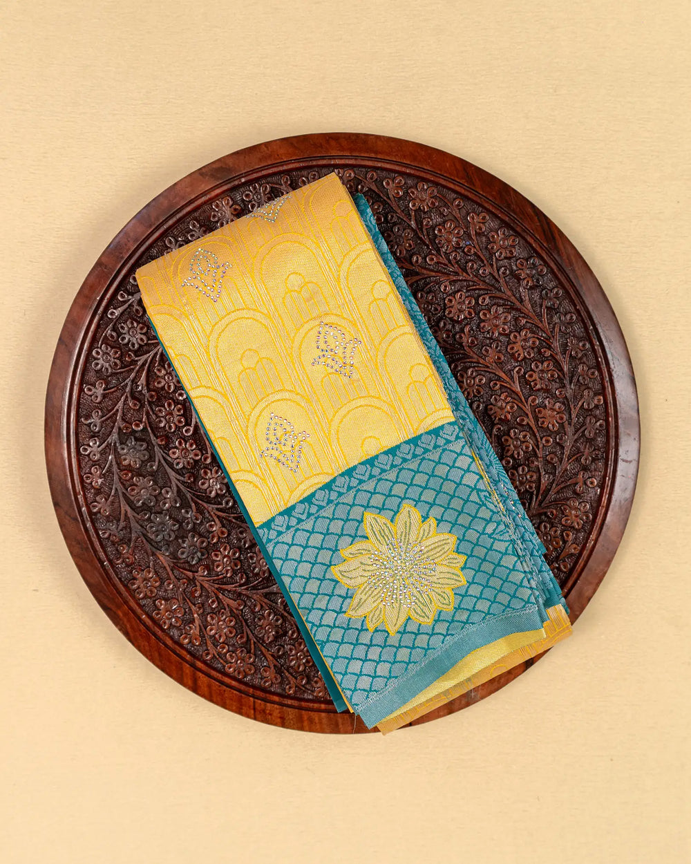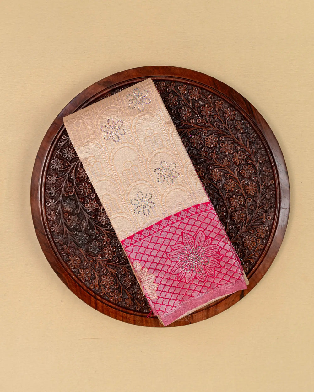 | Style | Traditional saree design with multi-stone embellishments, ideal for elegant and festive styling |