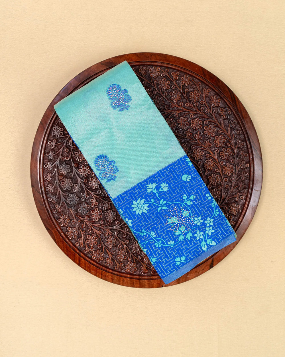 | Description | Elegant litchi silk saree adorned with stunning stone embellishments and intricate meena butta designs all over the body, offering a refined and regal look perfect for weddings, receptions, and festive occasions. |