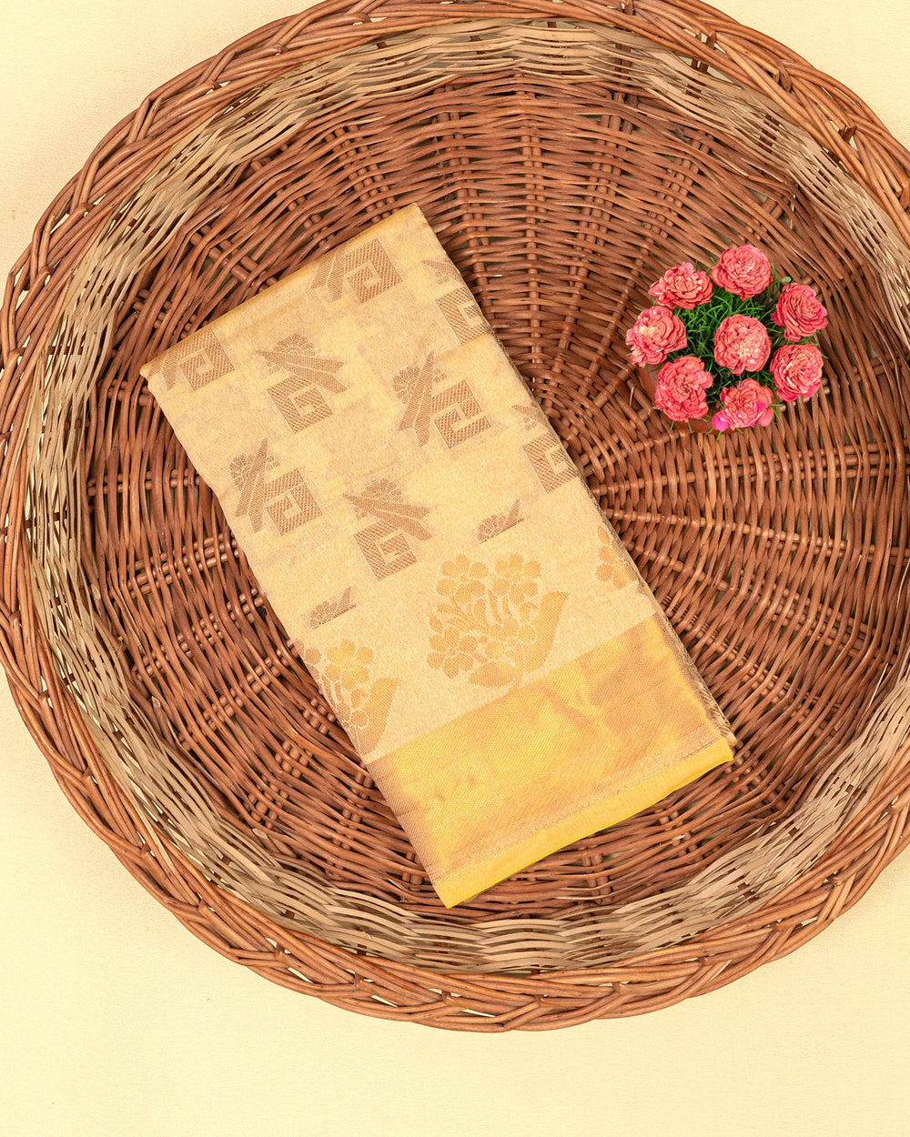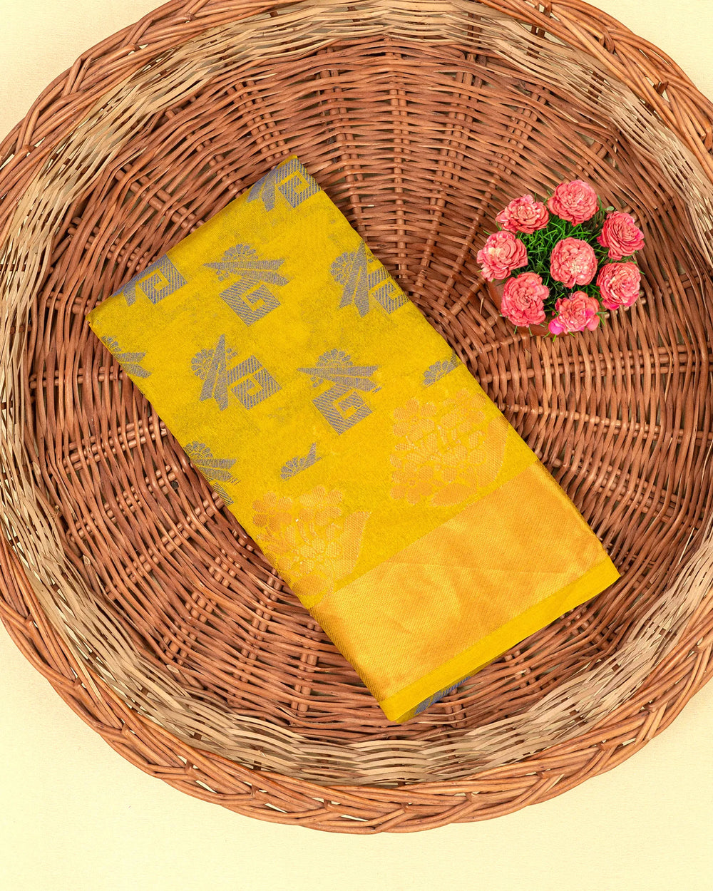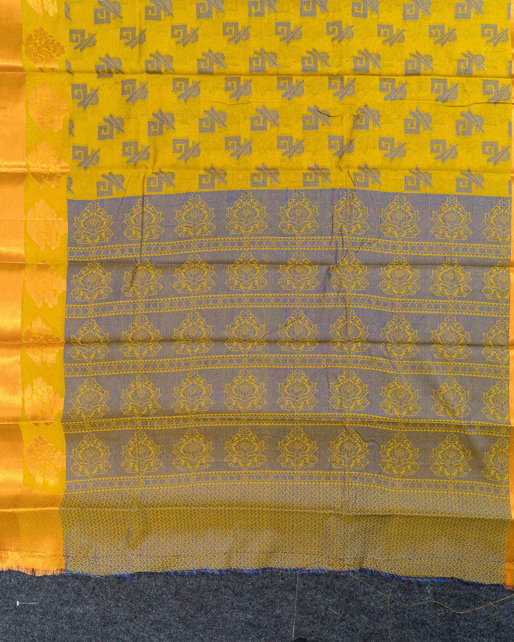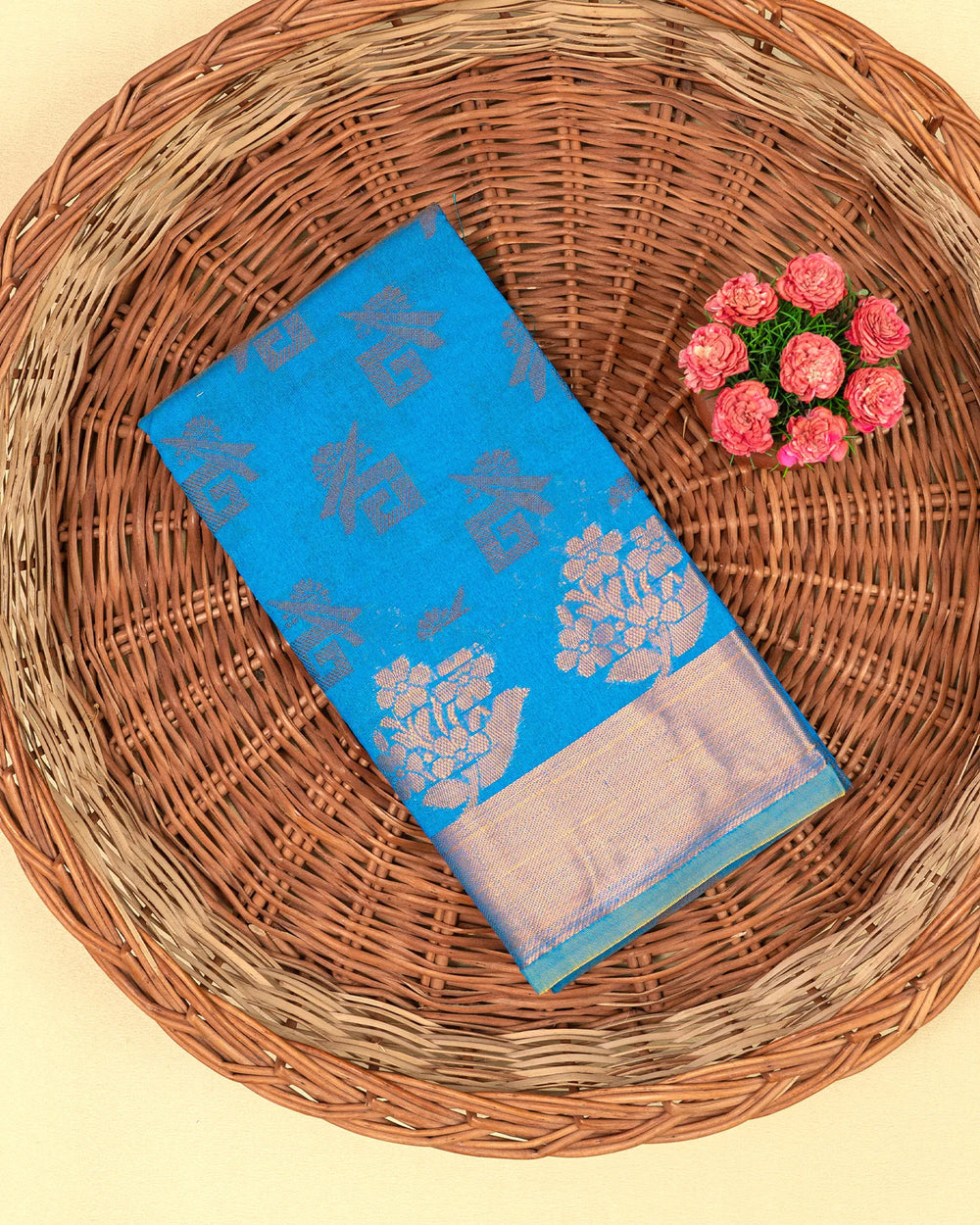 | Blouse | Running jaquard blouse that beautifully complements the saree’s copper butta detailing, providing a sophisticated and cohesive finish. |